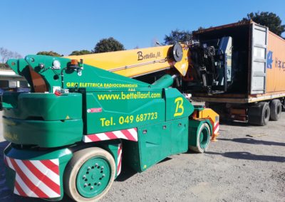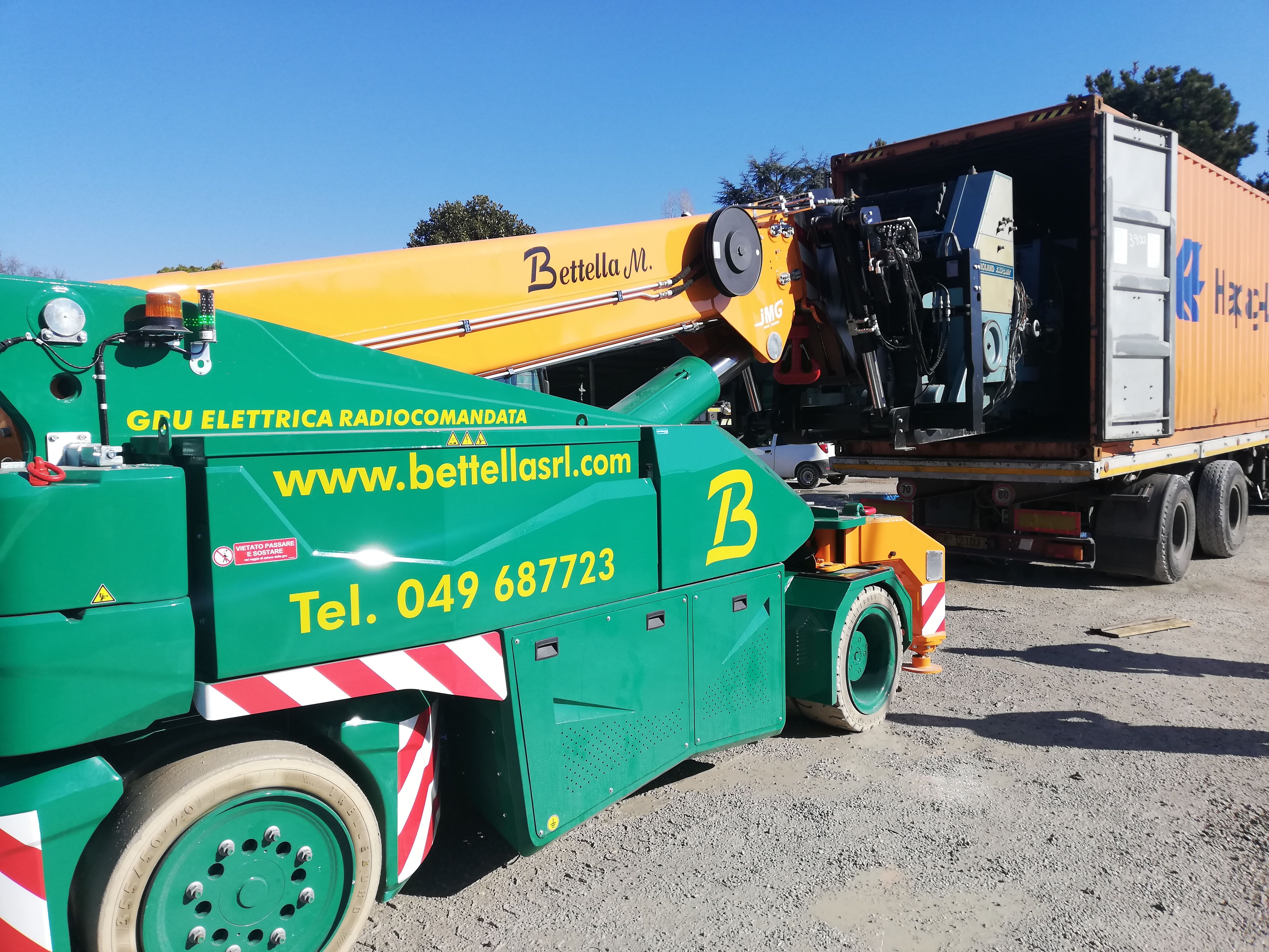 MOVIMENTAZIONI INDUSTRIALI CARICO MACCHINARI SU CONTAINER l Descrizione Carico di un macchinario industriale su container con l’ausilio di forche idrauliche montate su gru elettrica JMG300 Località Nostro Stabilimento di Padova, Italia Attrezzature Gru elettrica JMG300 con forche idrauliche ← Inoltro macchinari MM Padova Scarico e posizionamento gruppo stampa linea nuova →