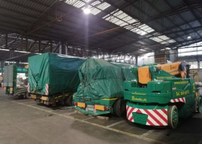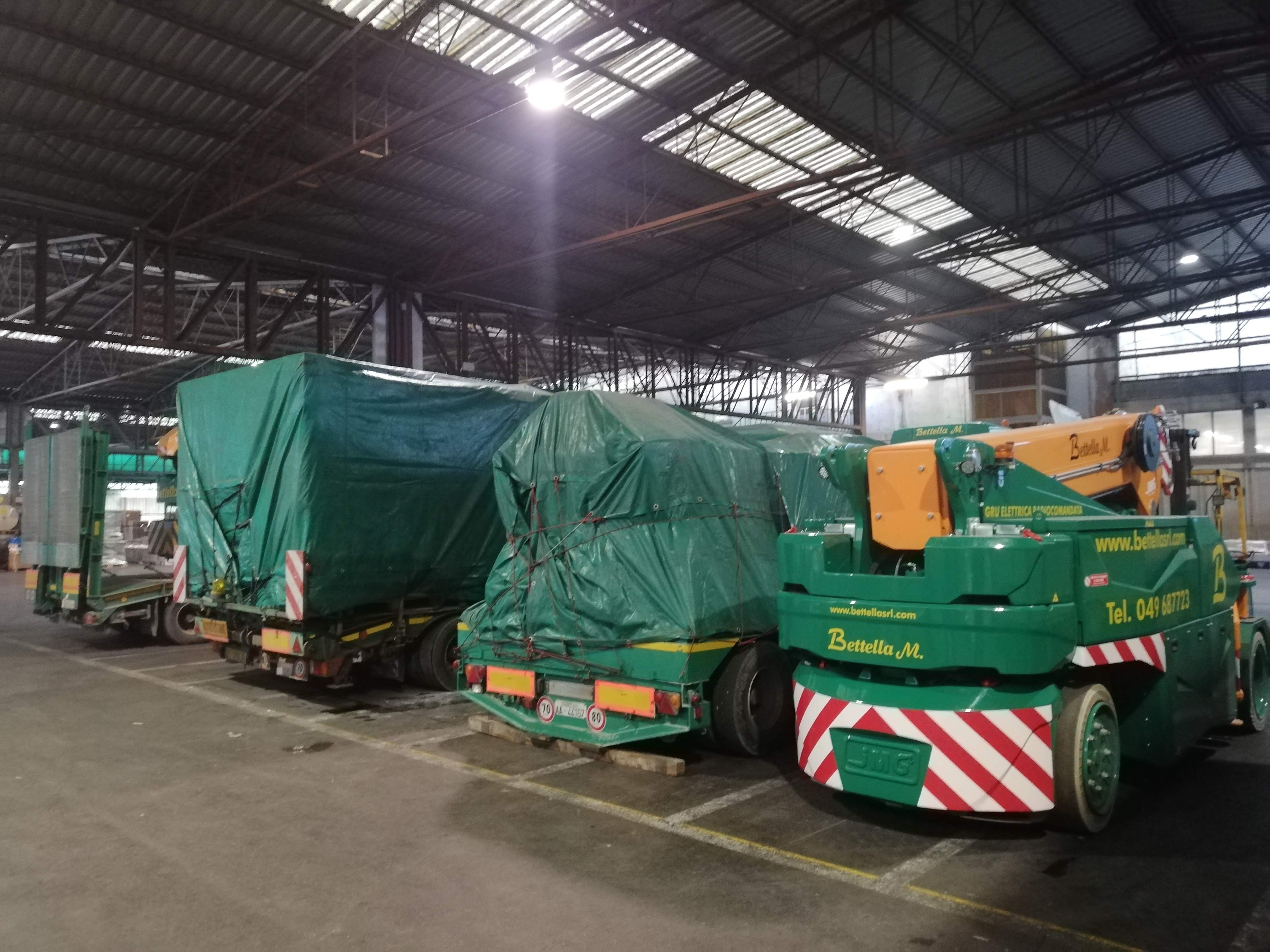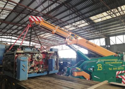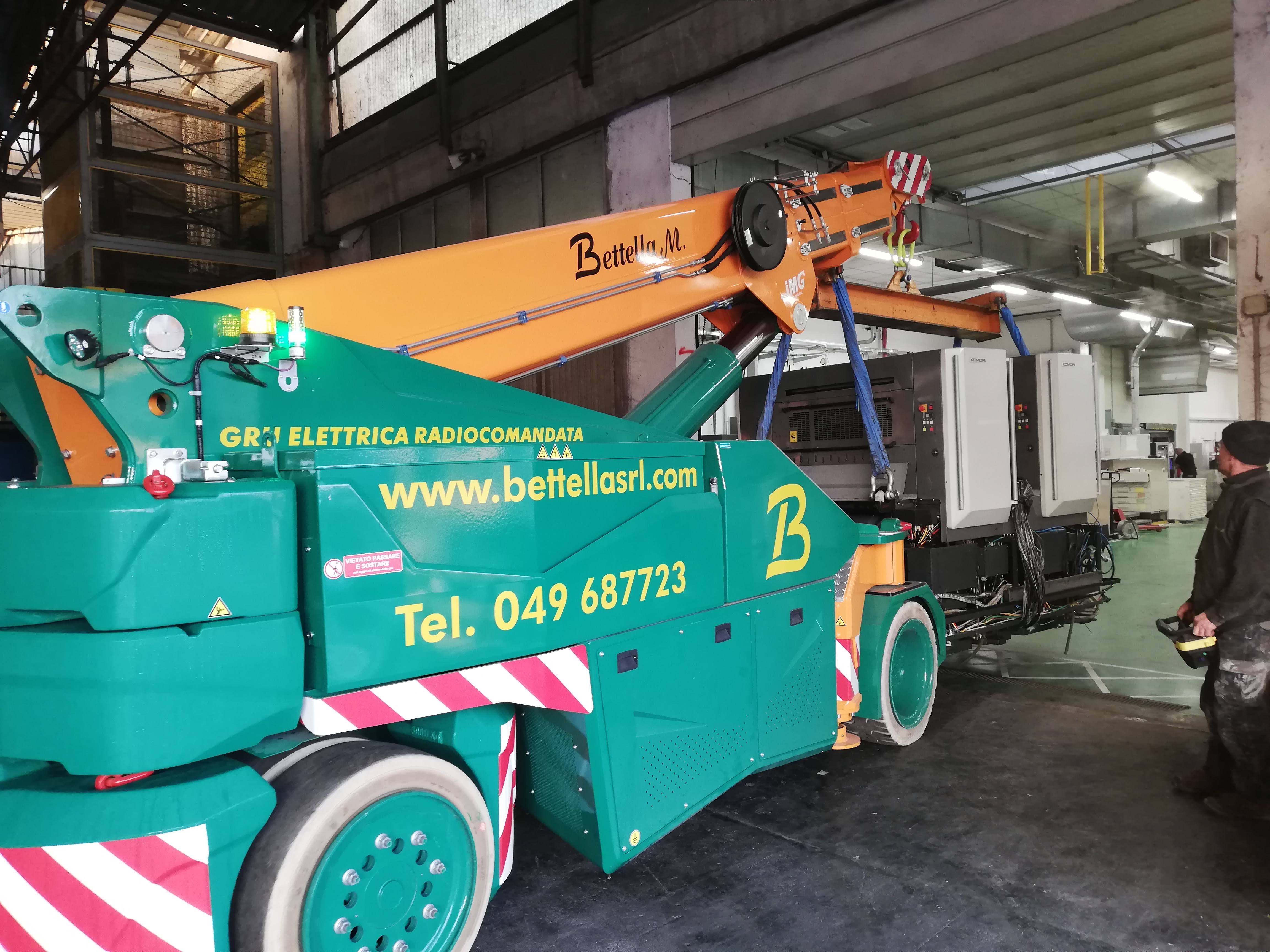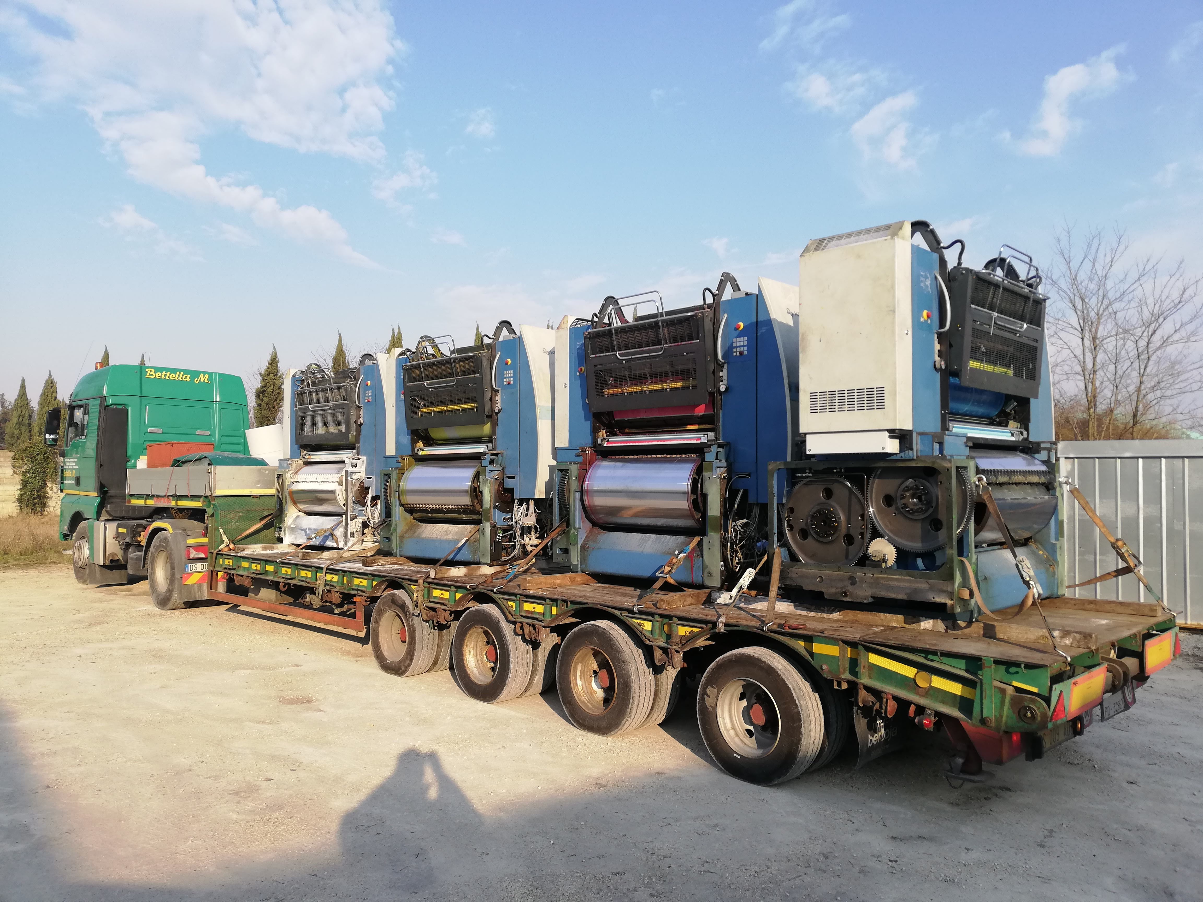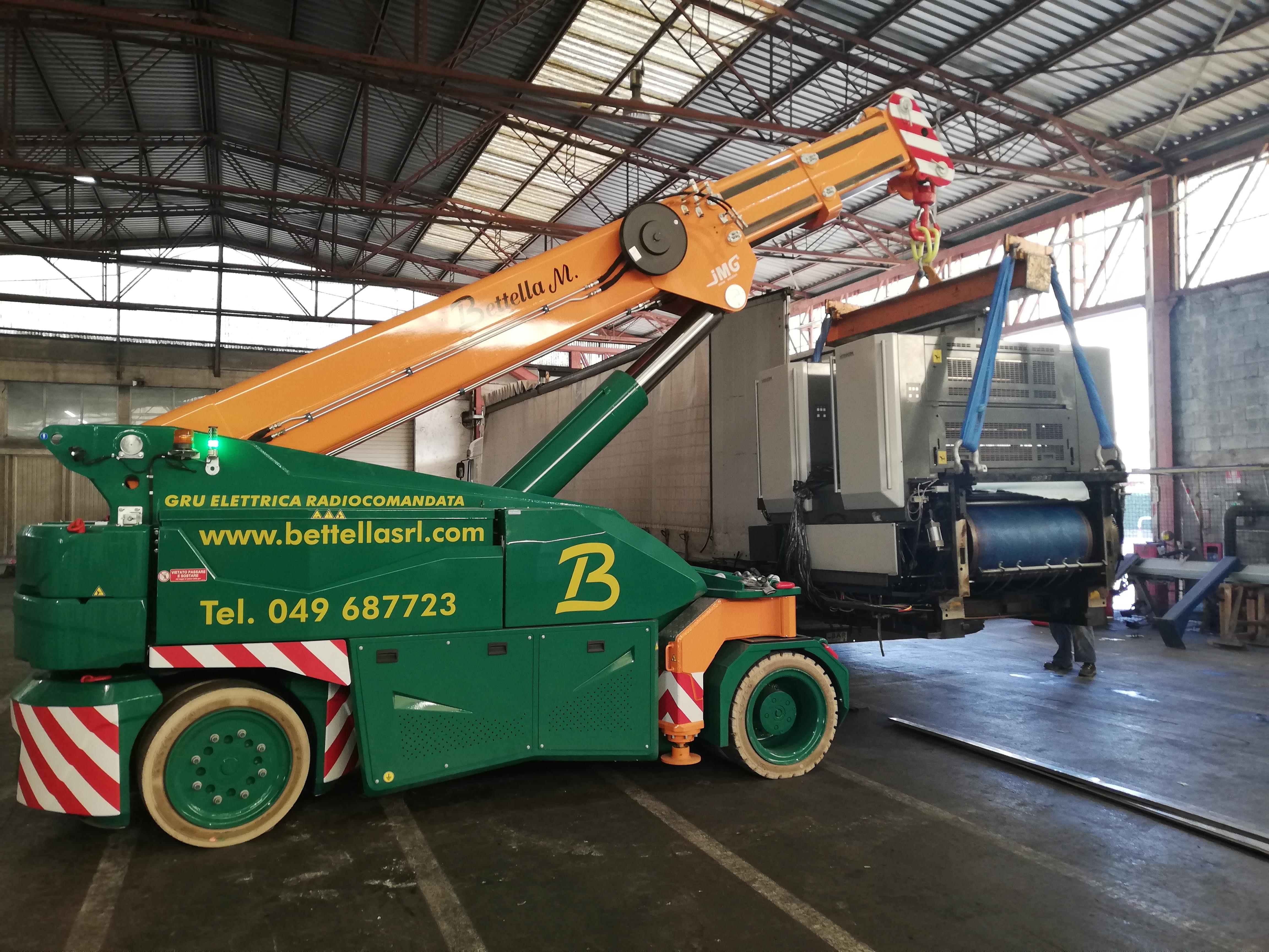 Ricollocazione macchinari industriali da stampa con l’impiego di gru elettrica JMG 300 e varie attrezzature elettriche oltre all’impiego di nostri mezzi per trasporto e sollevamento dei pezzi e bilici.
