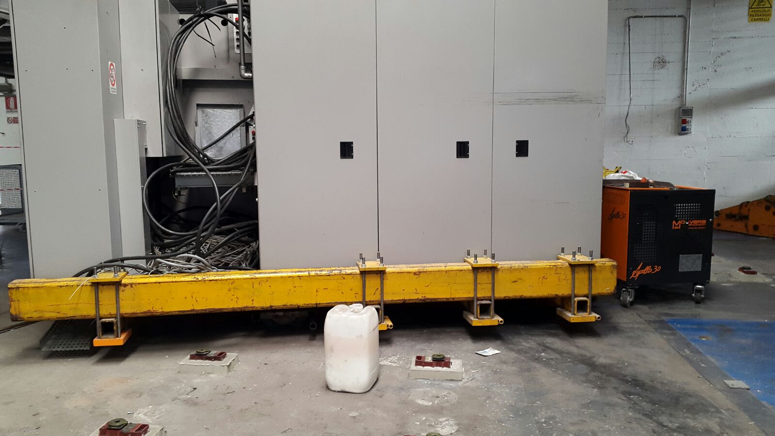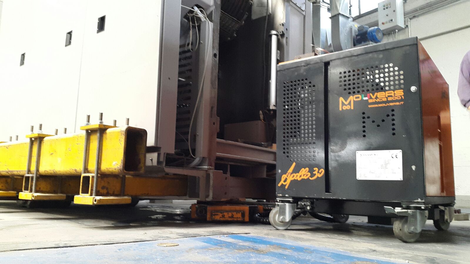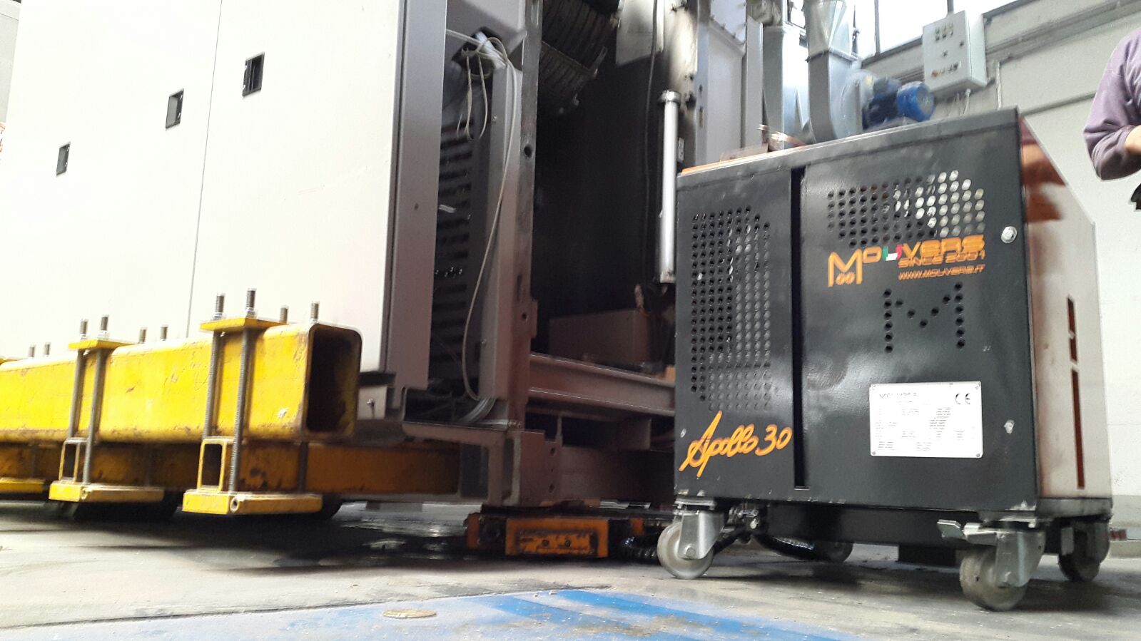 MACCHINARI INDUSTRIALI POSIZIONAMENTO CON APOLLO 30 l Descrizione Spostamento e posizionamento di un macchinario industriale con rulliere elettriche Apollo 30 telecomandate, all’interno di un capannone. Località Veneto, Italia Attrezzature Apollo 30 ← Scarico e posizionamento pressa Inoltro macchinario industriale →