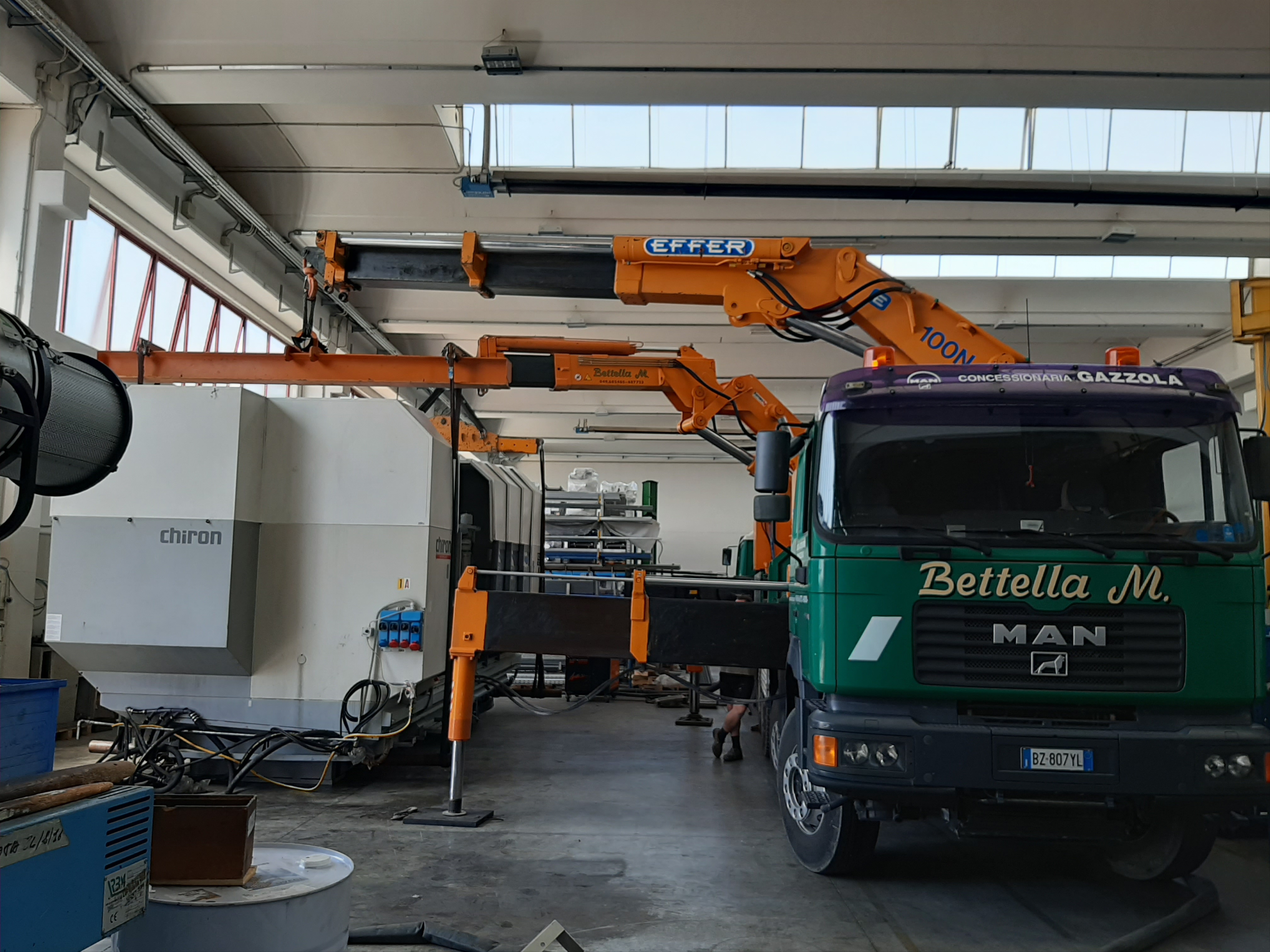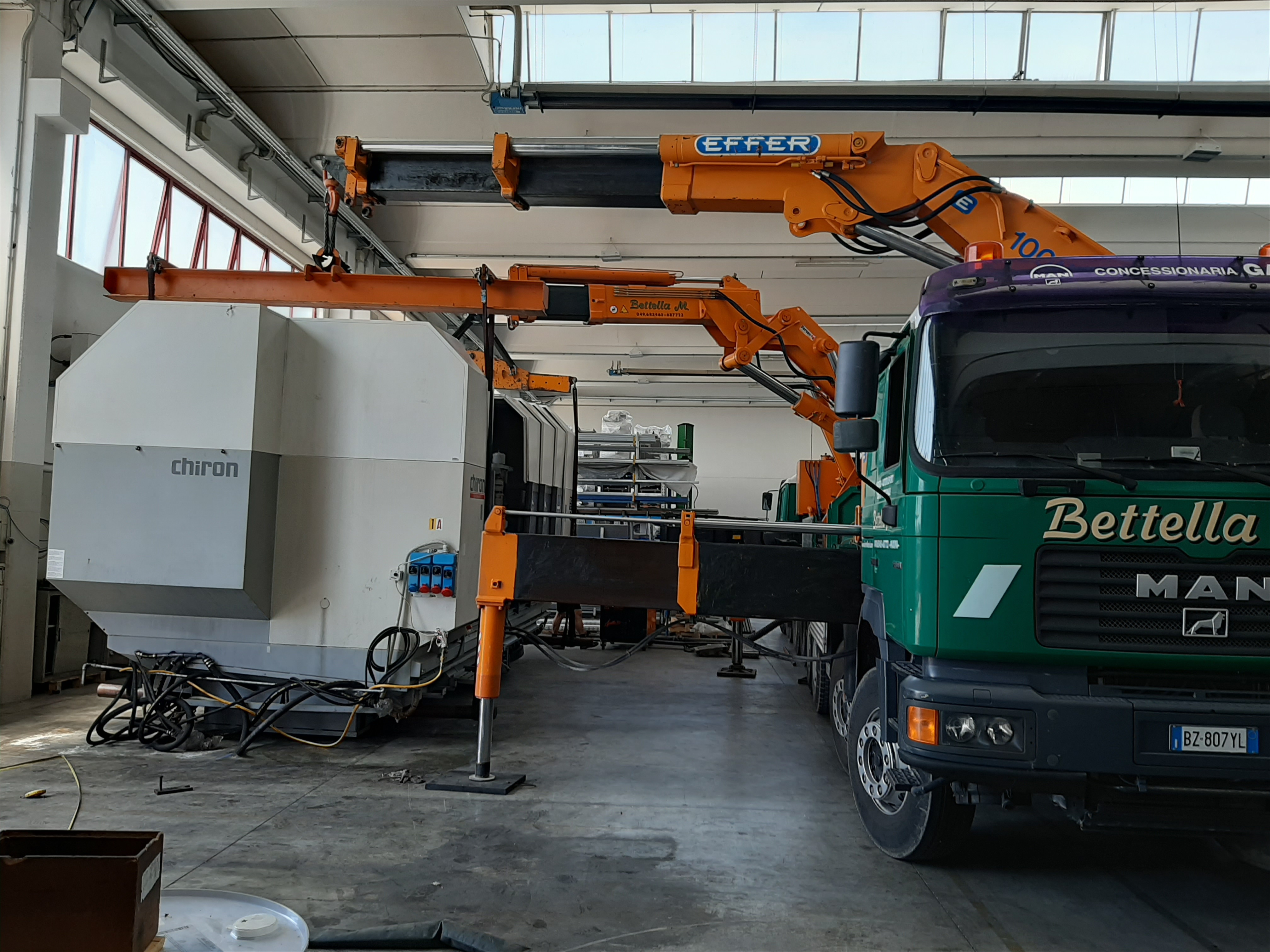 MACCHINARI INDUSTRIALI POSIZIONAMENTO RETTIFICA 50 TON l Descrizione Scarico con Gru Effer e posizionamento di una rettifica da 50 ton con rulliere elettriche telecomandate Apollo 80 Località Cremona, Italia Attrezzature Automezzi con Gru Apollo 80 ← Posizionamento centro di lavoro Trasferimento impianto Vicenza →
