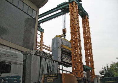 MACCHINARI INDUSTRIALI SOLLEVAMENTO ECCEZIONALE l Descrizione Sollevamento eccezionale macchinari con carroponte 80 T ed inoltro con Apollo 30 rulliere elettriche. Località Milano, Italia Attrezzature Apollo 30 Squadre dedicate Portale carroponte modulare 80 Ton Sollevamento Forno Inprint →
