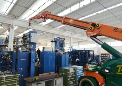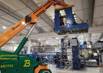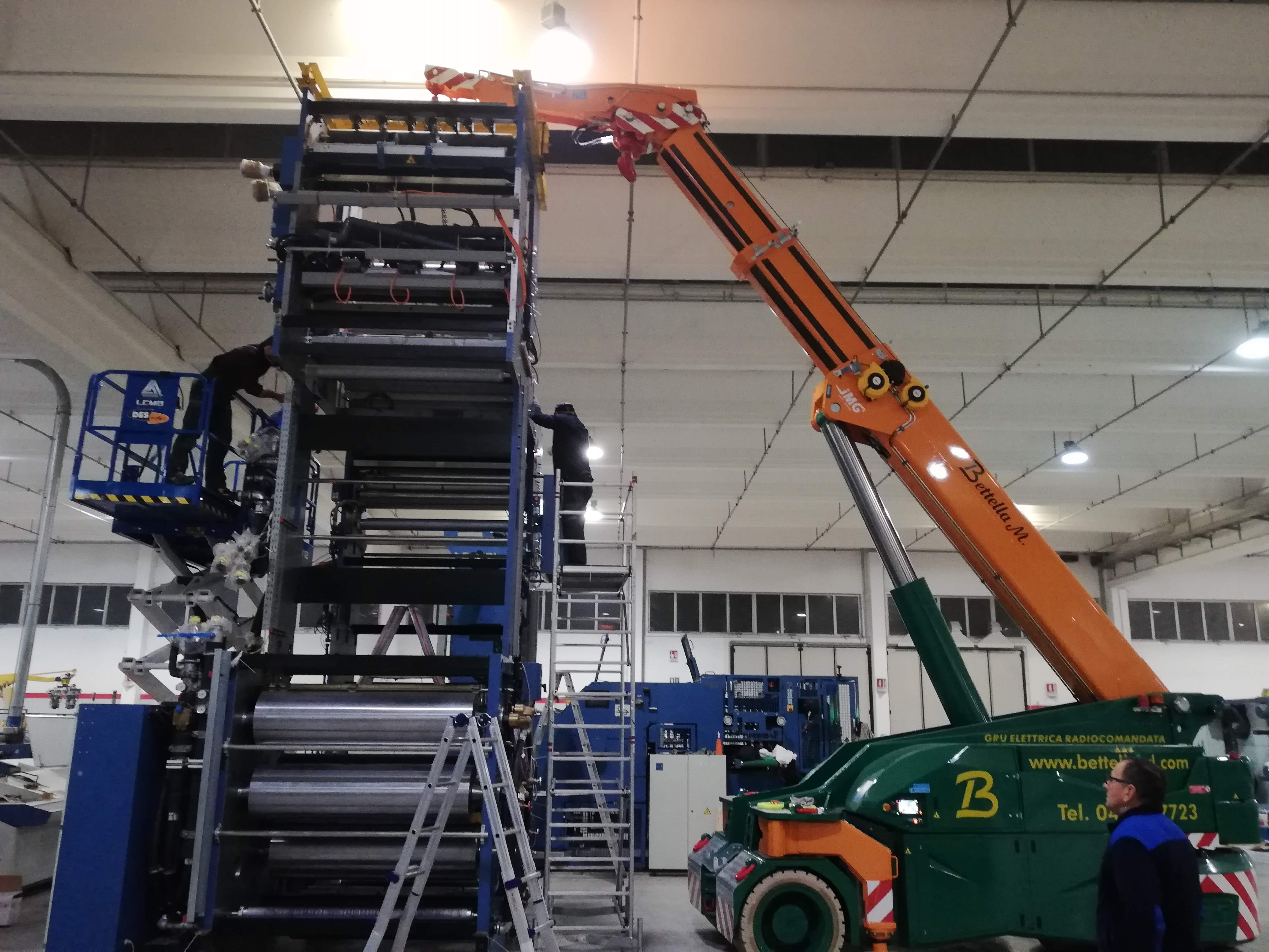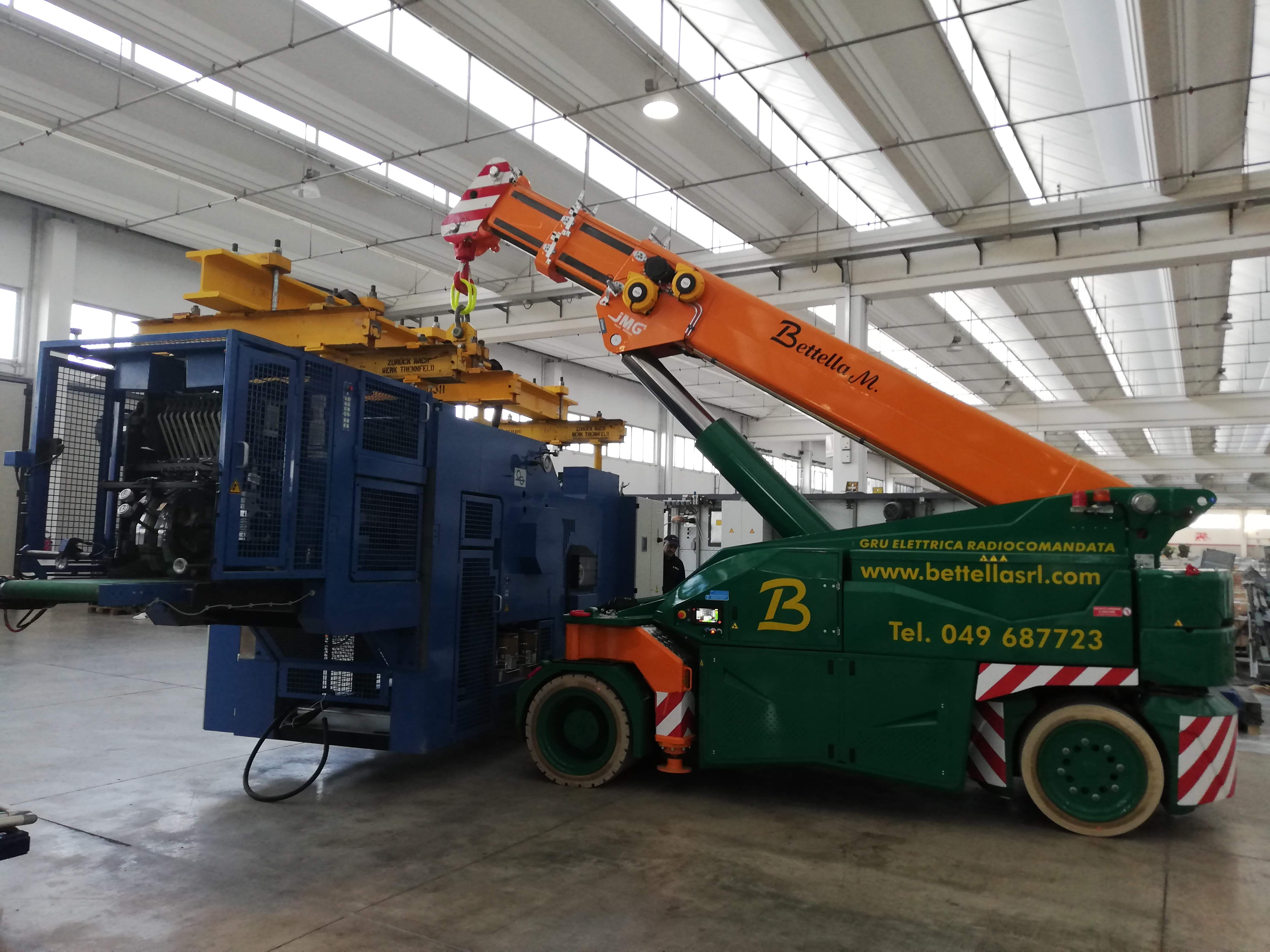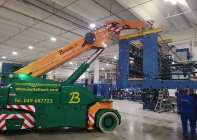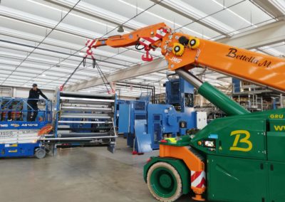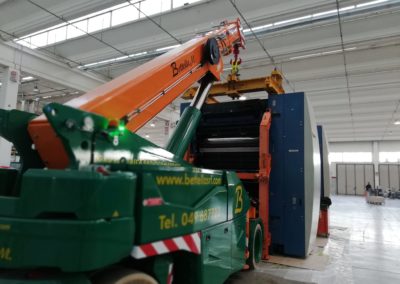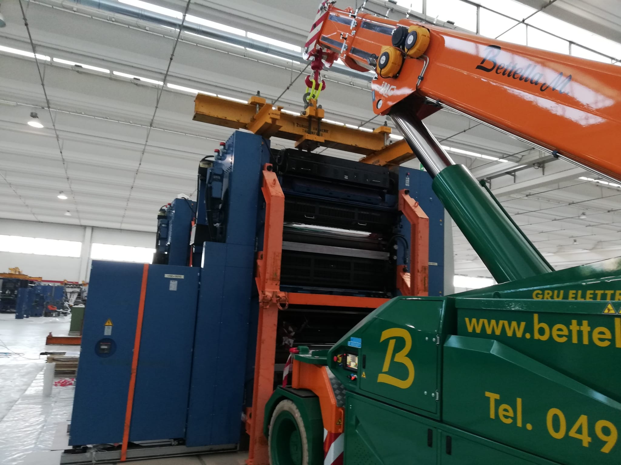 Per il trasferimento sono stati impiegati 16 Bilici  completi caricati con le varie parti dell’impianto e le nostre Gru, per poi essere scaricati nella sede del cliente in Italia da un’altra squadra che ha iniziato il posizionamento e il rimontaggio del macchinario complesso.
