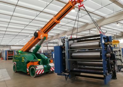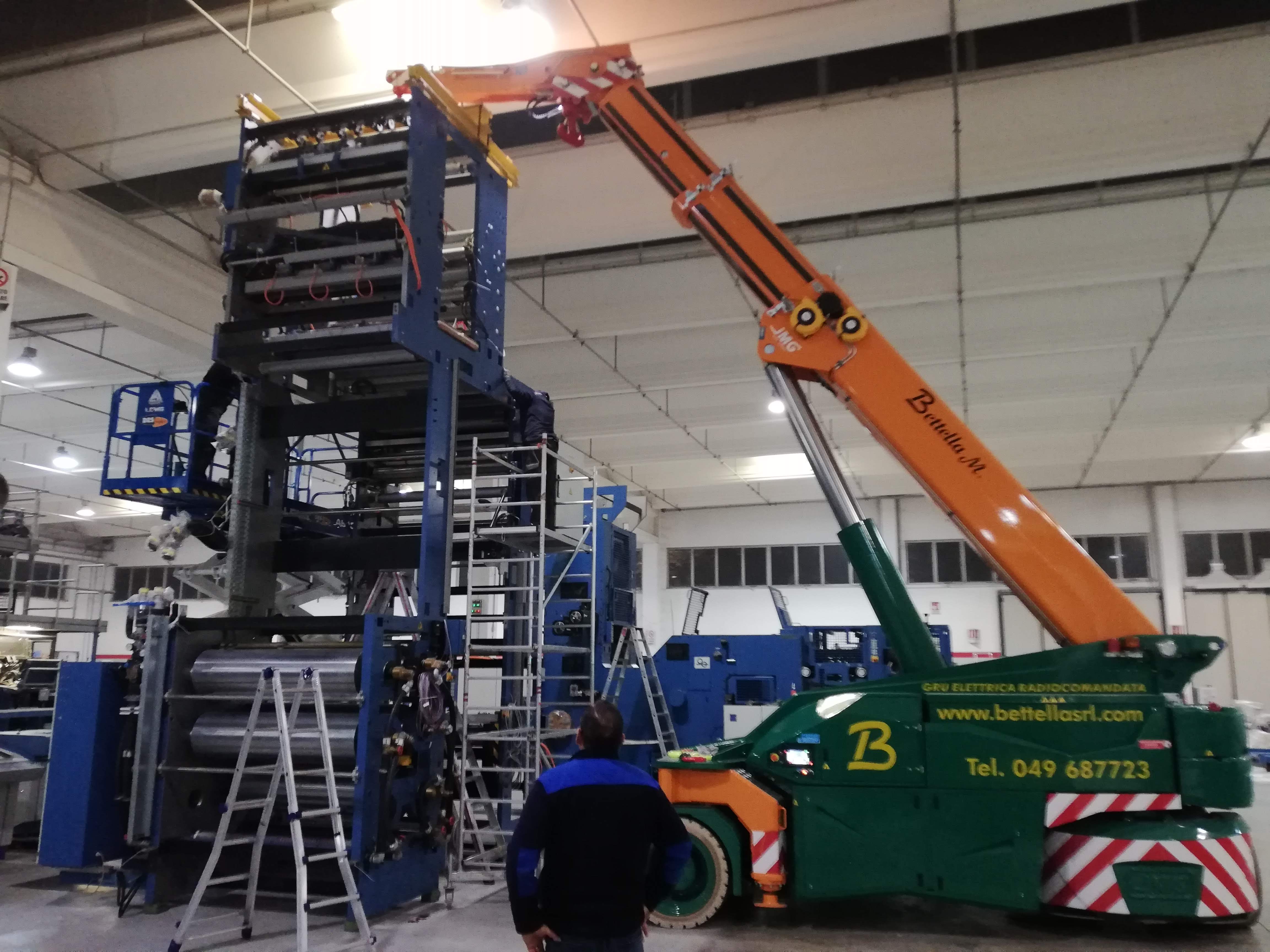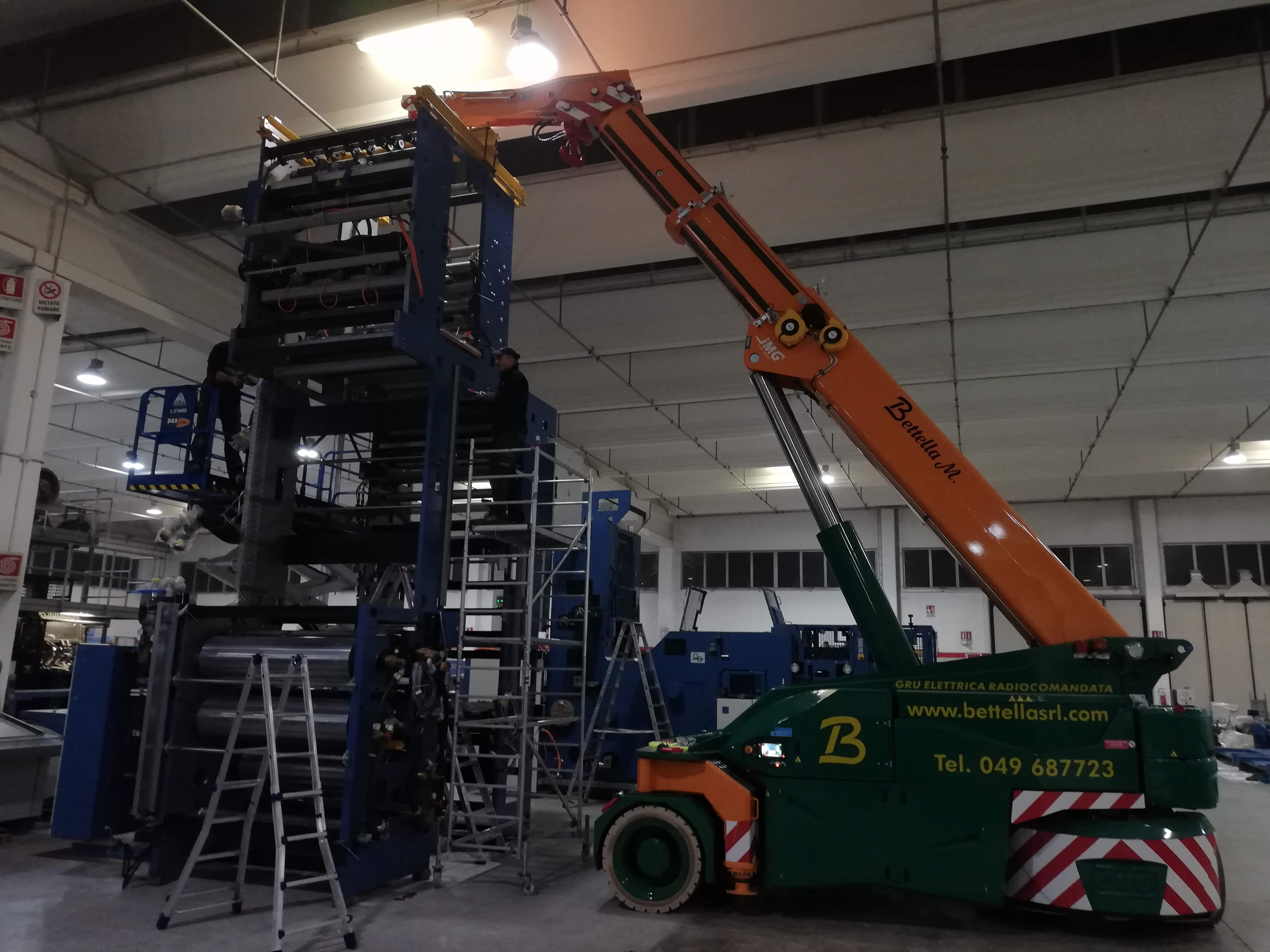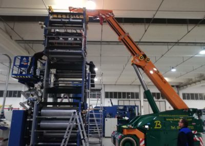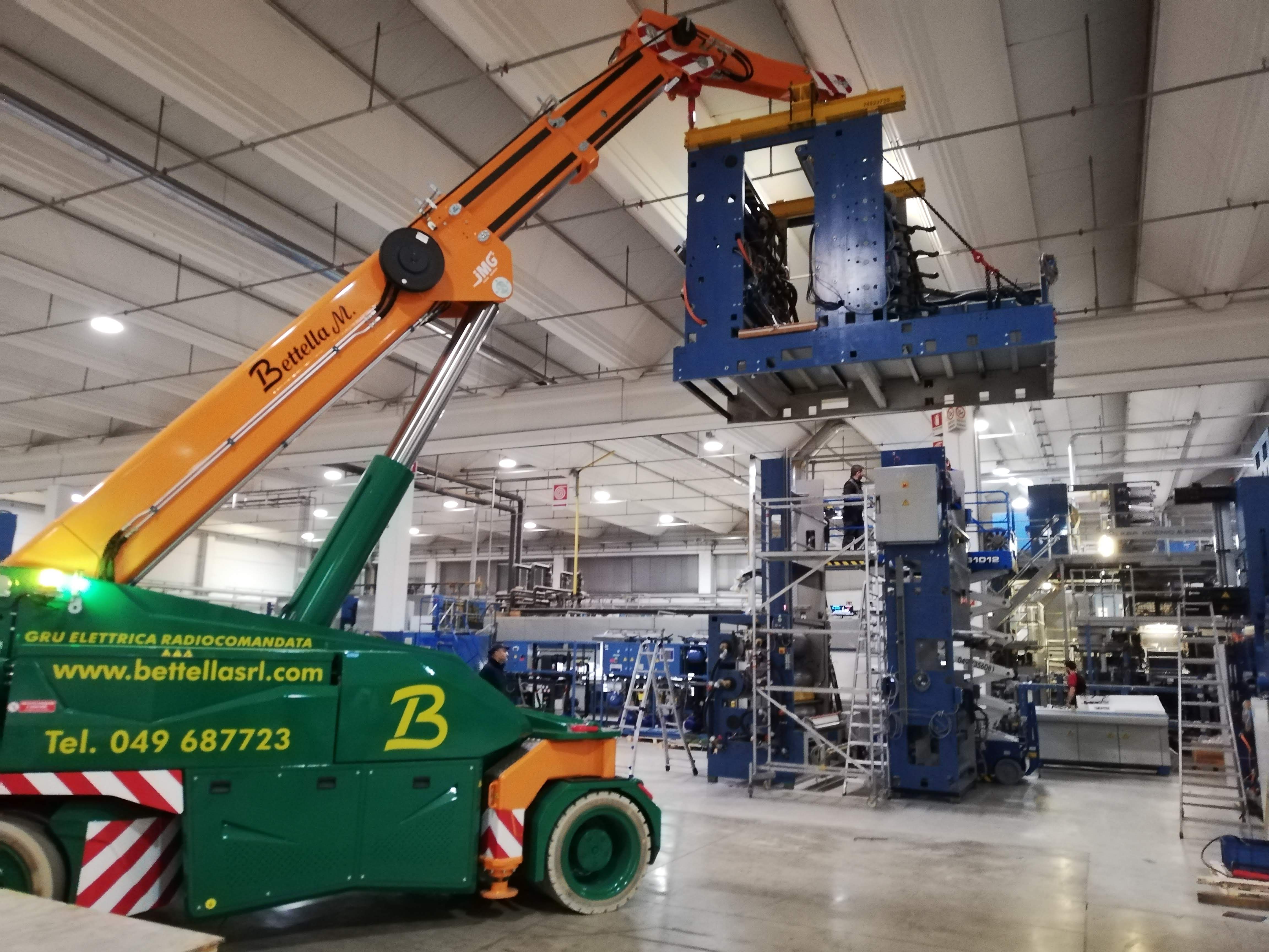 Per il trasferimento sono stati impiegati 16 Bilici  completi caricati con le varie parti dell’impianto e le nostre Gru, per poi essere scaricati nella sede del cliente in Italia da un’altra squadra che ha iniziato il posizionamento e il rimontaggio del macchinario complesso.