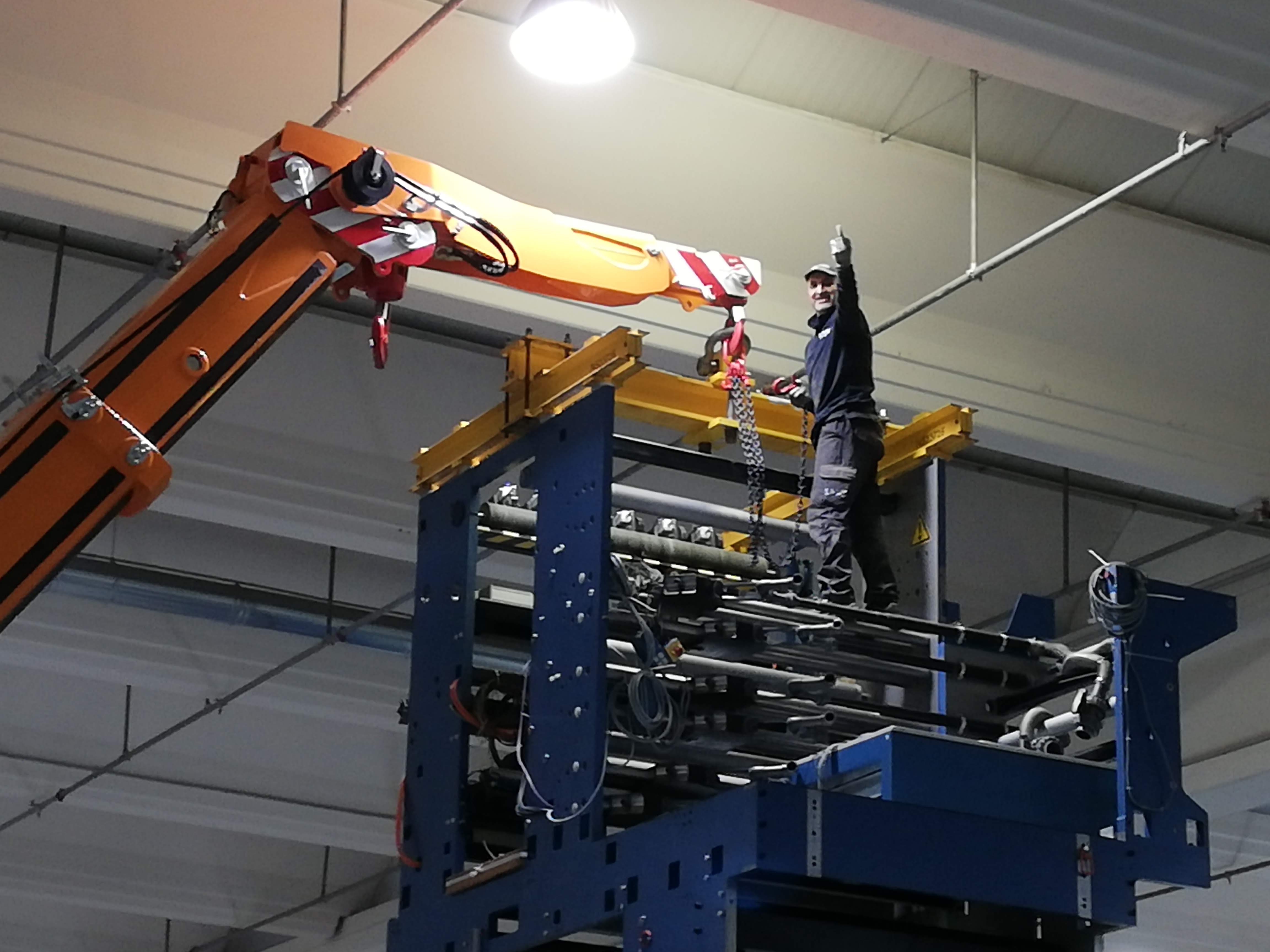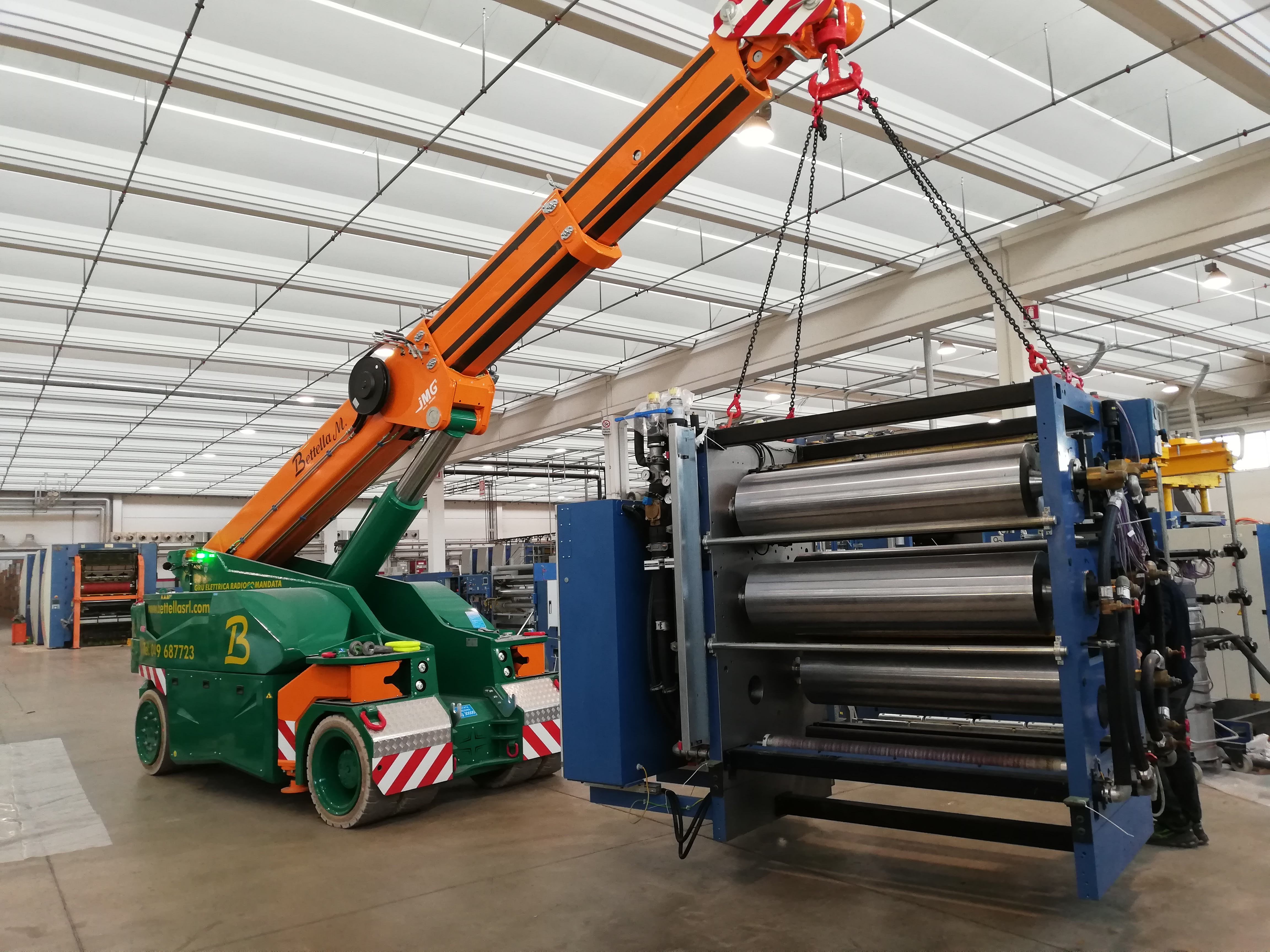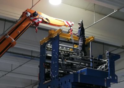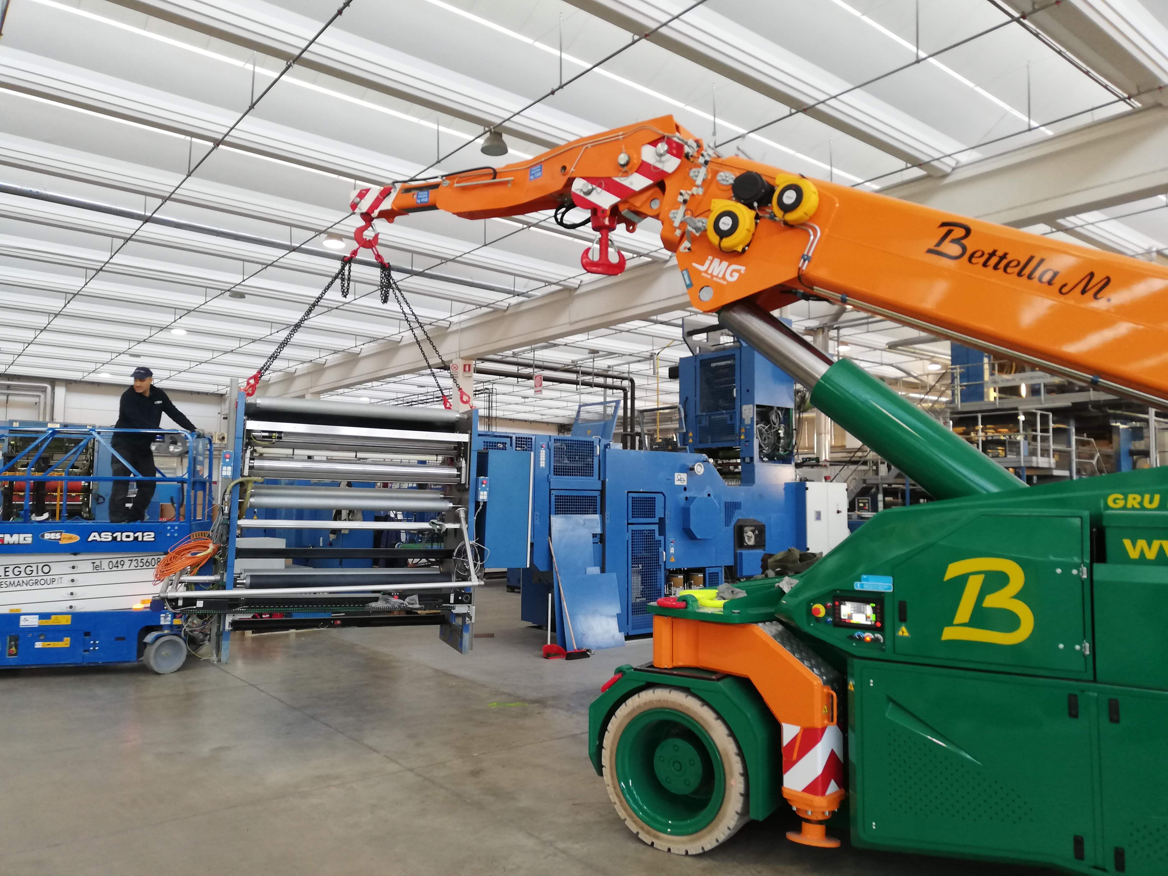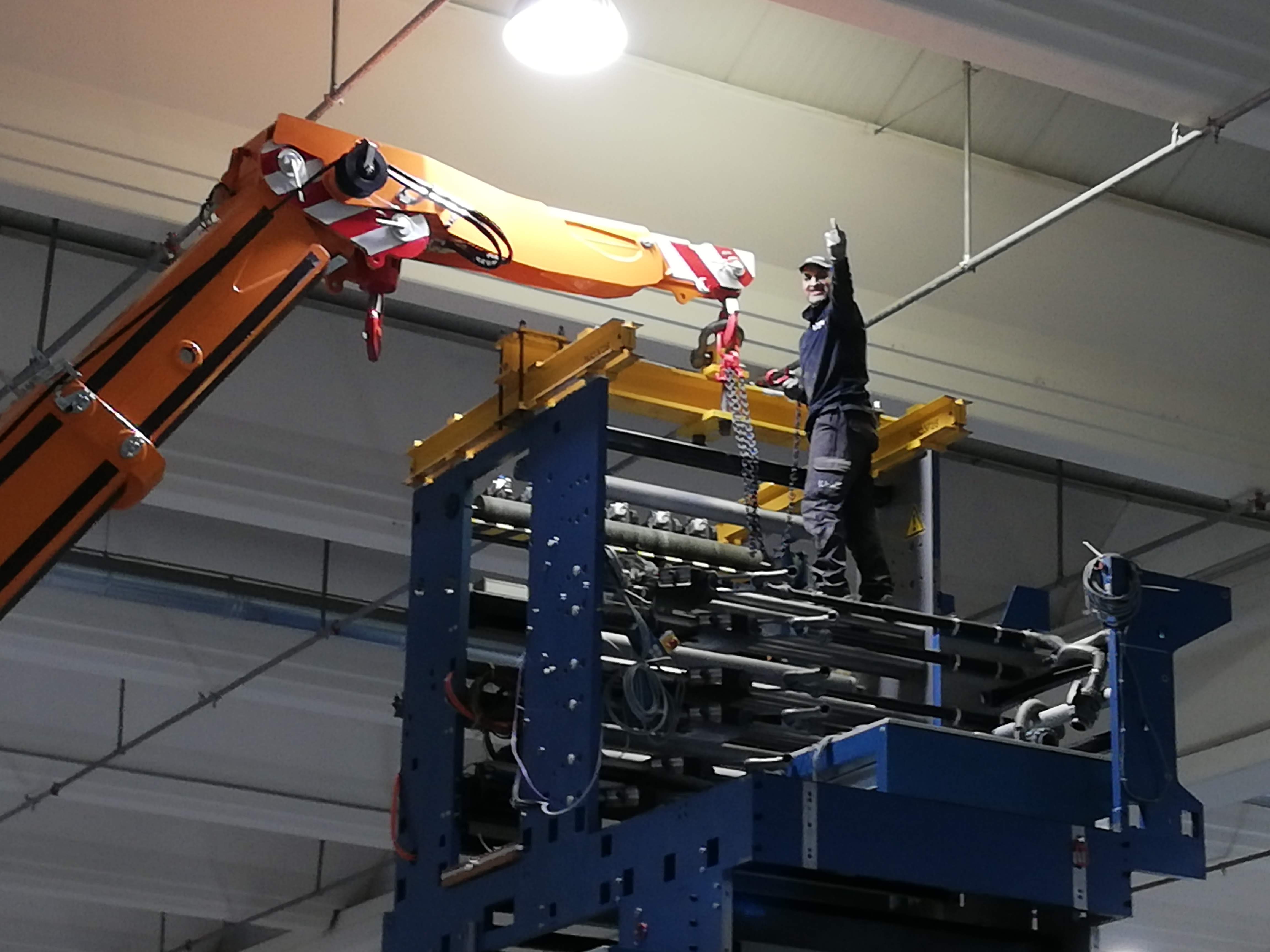 Per il trasferimento sono stati impiegati 16 Bilici  completi caricati con le varie parti dell’impianto e le nostre Gru, per poi essere scaricati nella sede del cliente in Italia da un’altra squadra che ha iniziato il posizionamento e il rimontaggio del macchinario complesso.