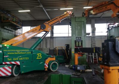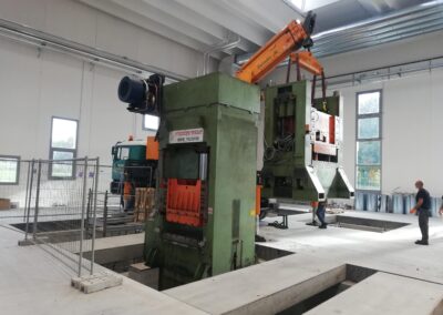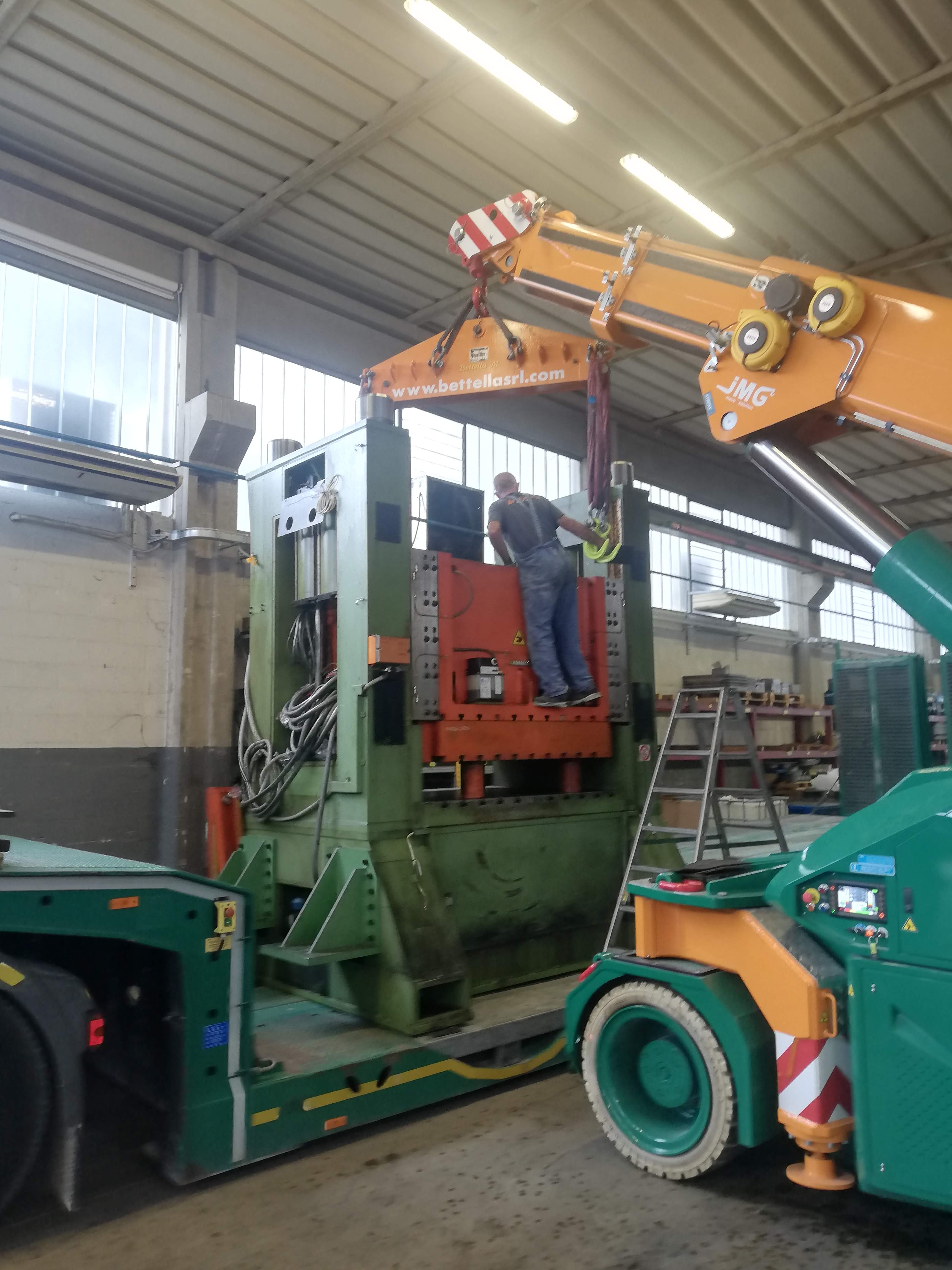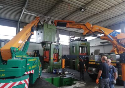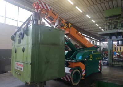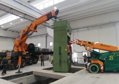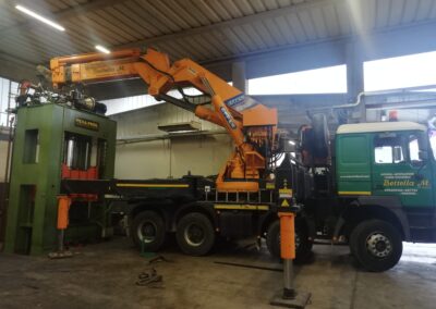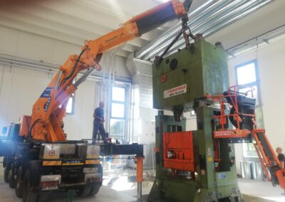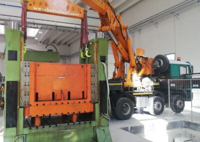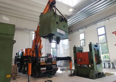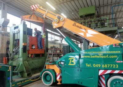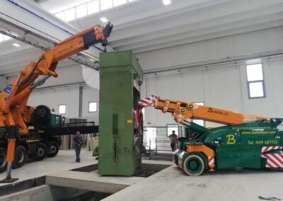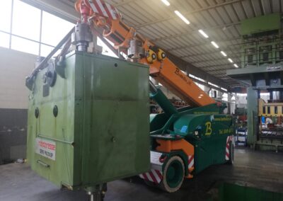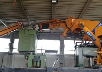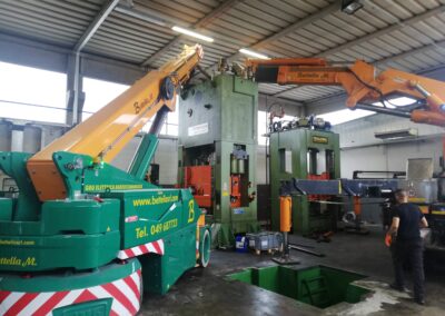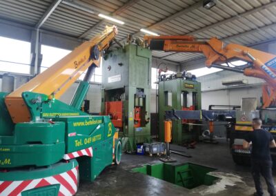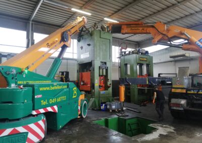Alcune di queste Presse (Peso 97 Ton e 115 Ton) sono state smontate con le nostre cavallette idrauliche per permettere il trasporto e poi rimontate nella nuova sede.