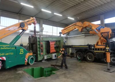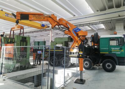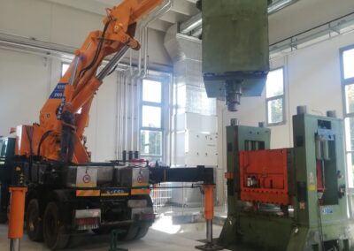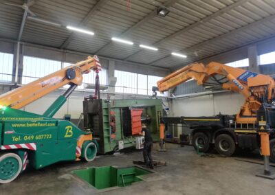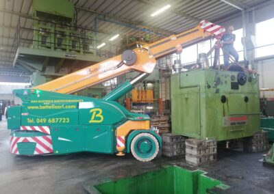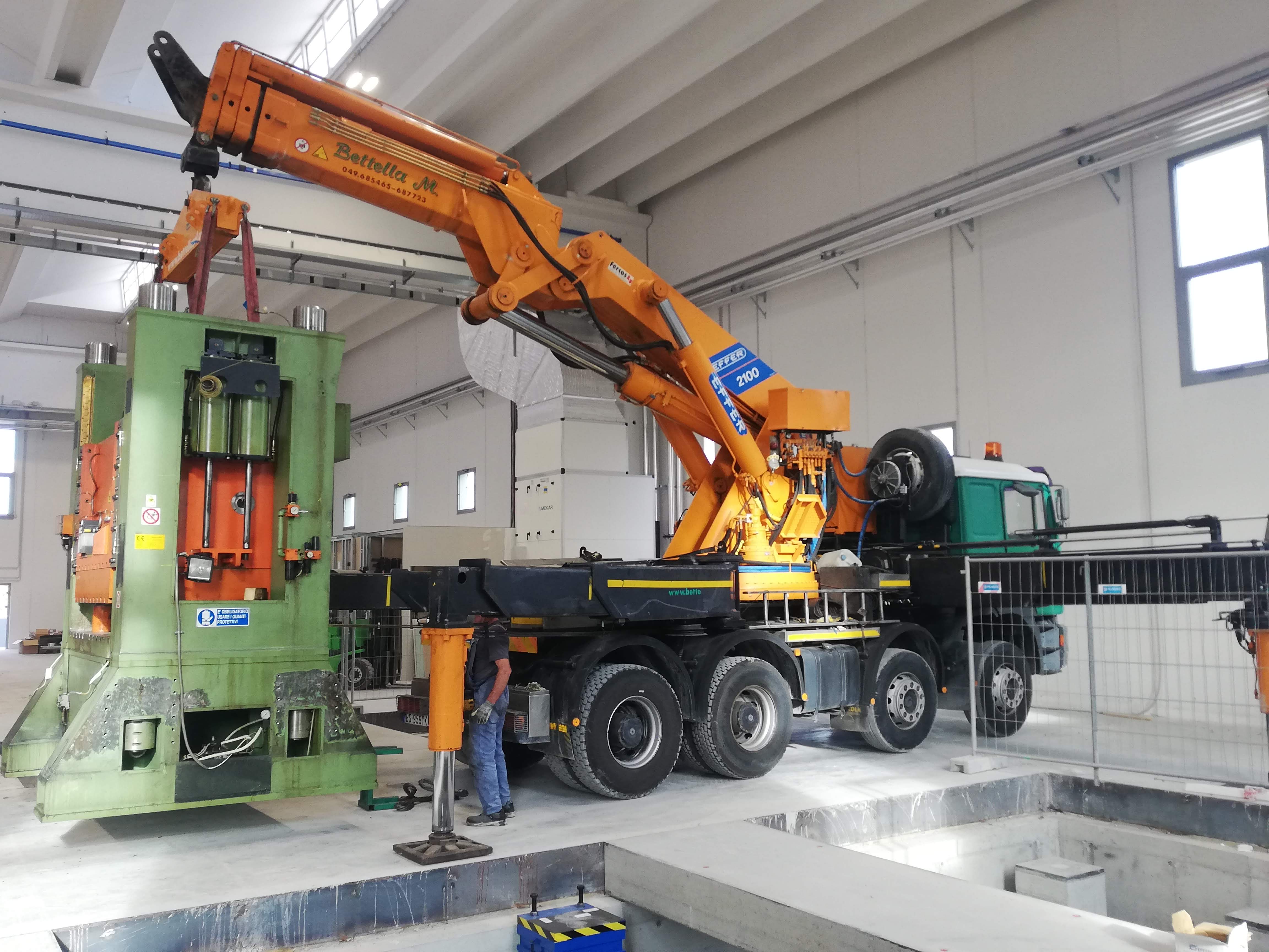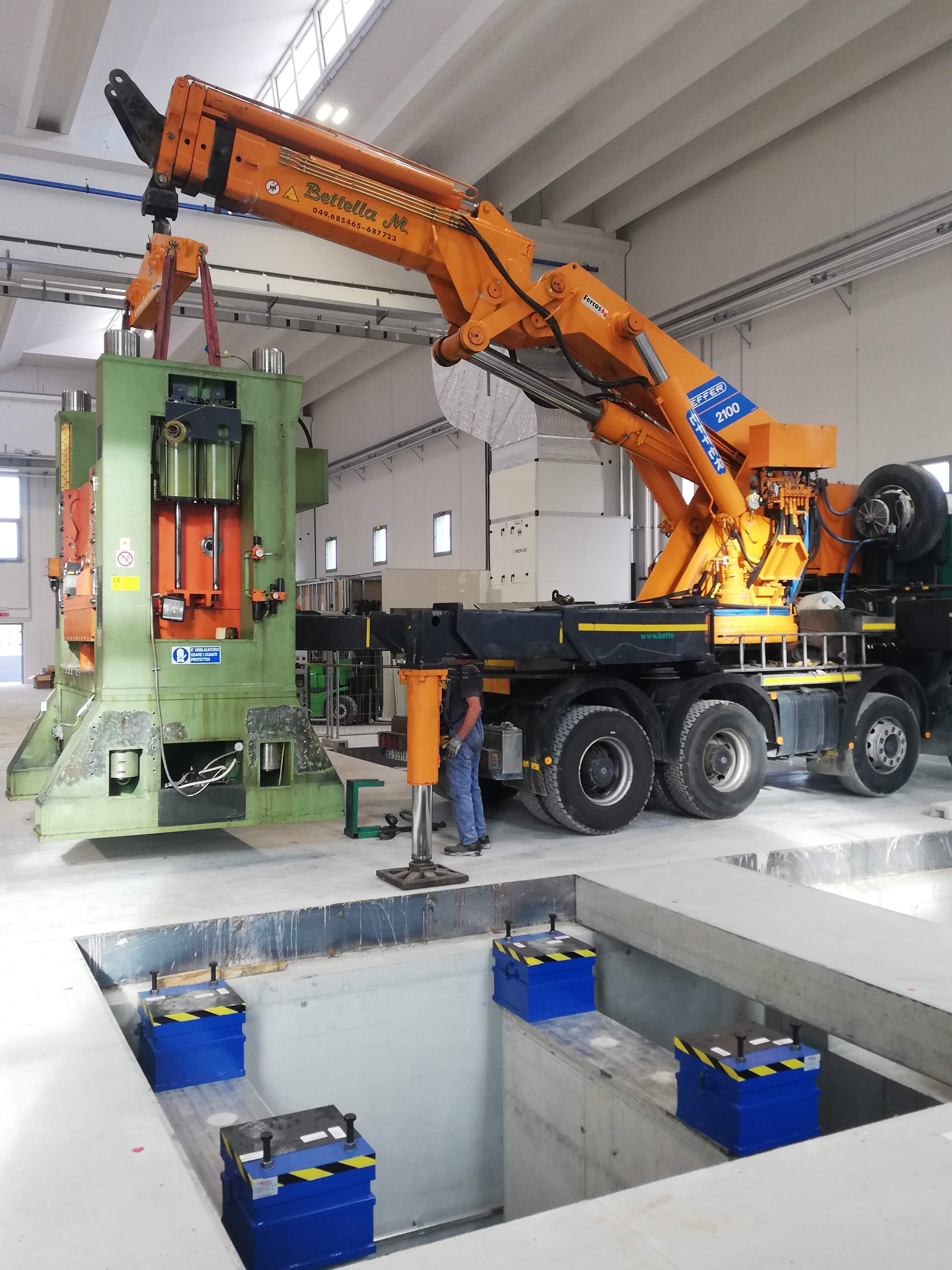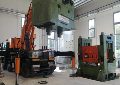 Alcune di queste Presse (Peso 97 Ton e 115 Ton) sono state smontate con le nostre cavallette idrauliche per permettere il trasporto e poi rimontate nella nuova sede.