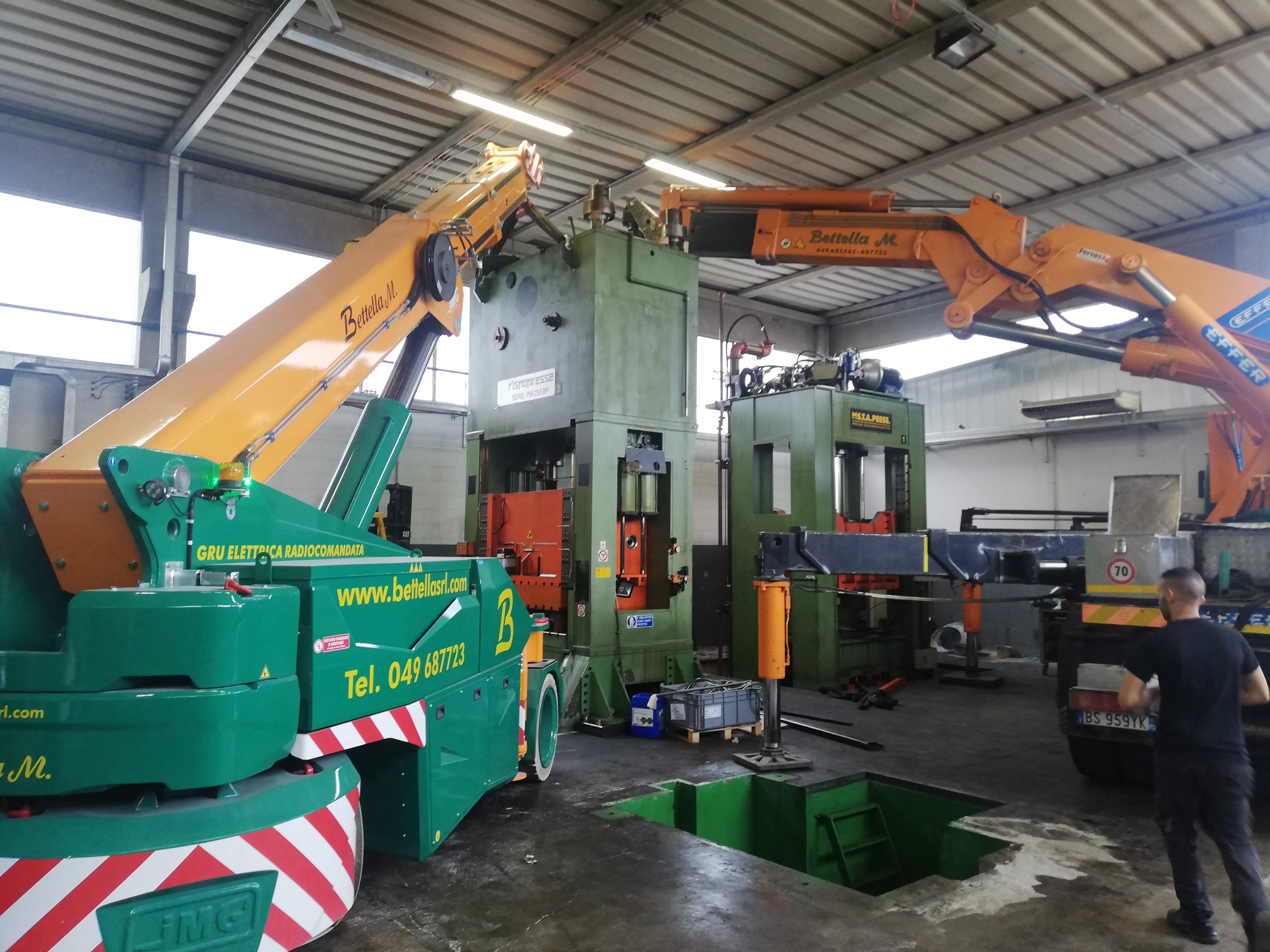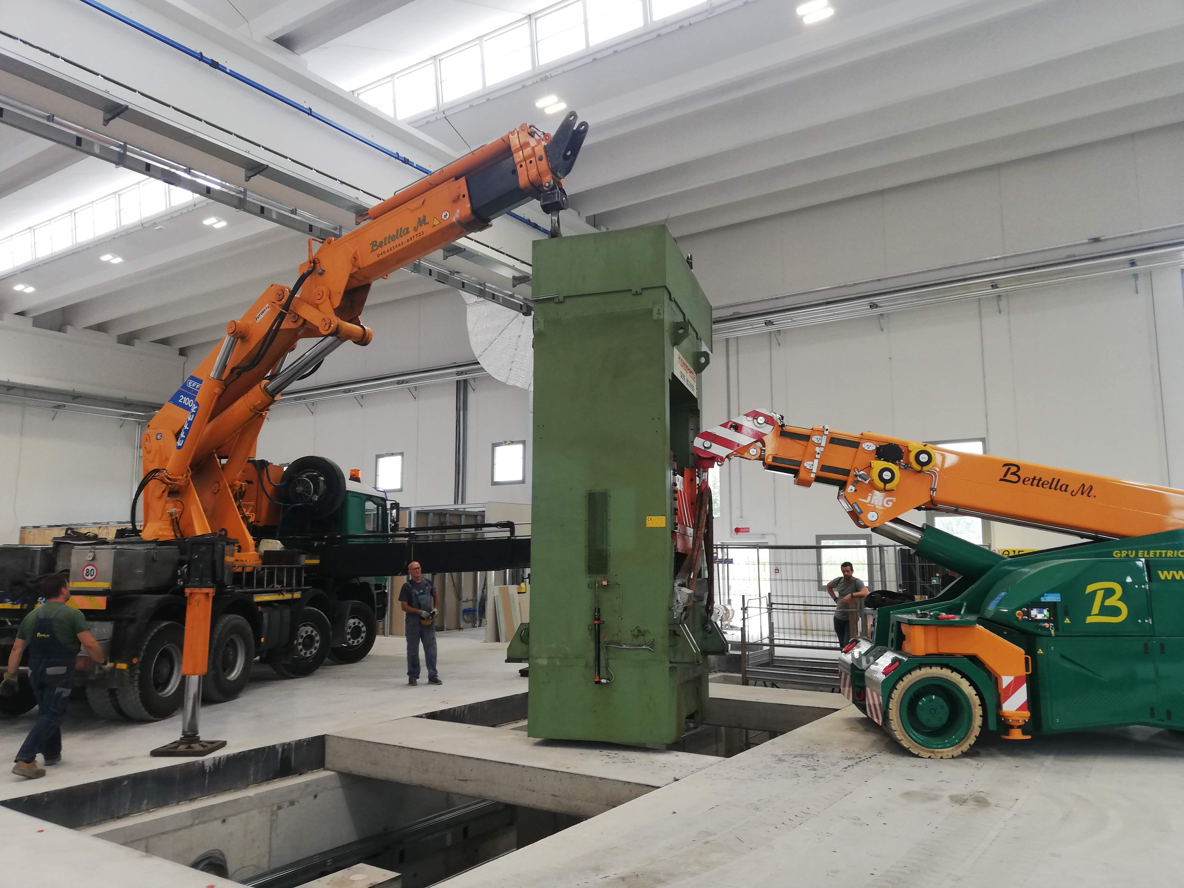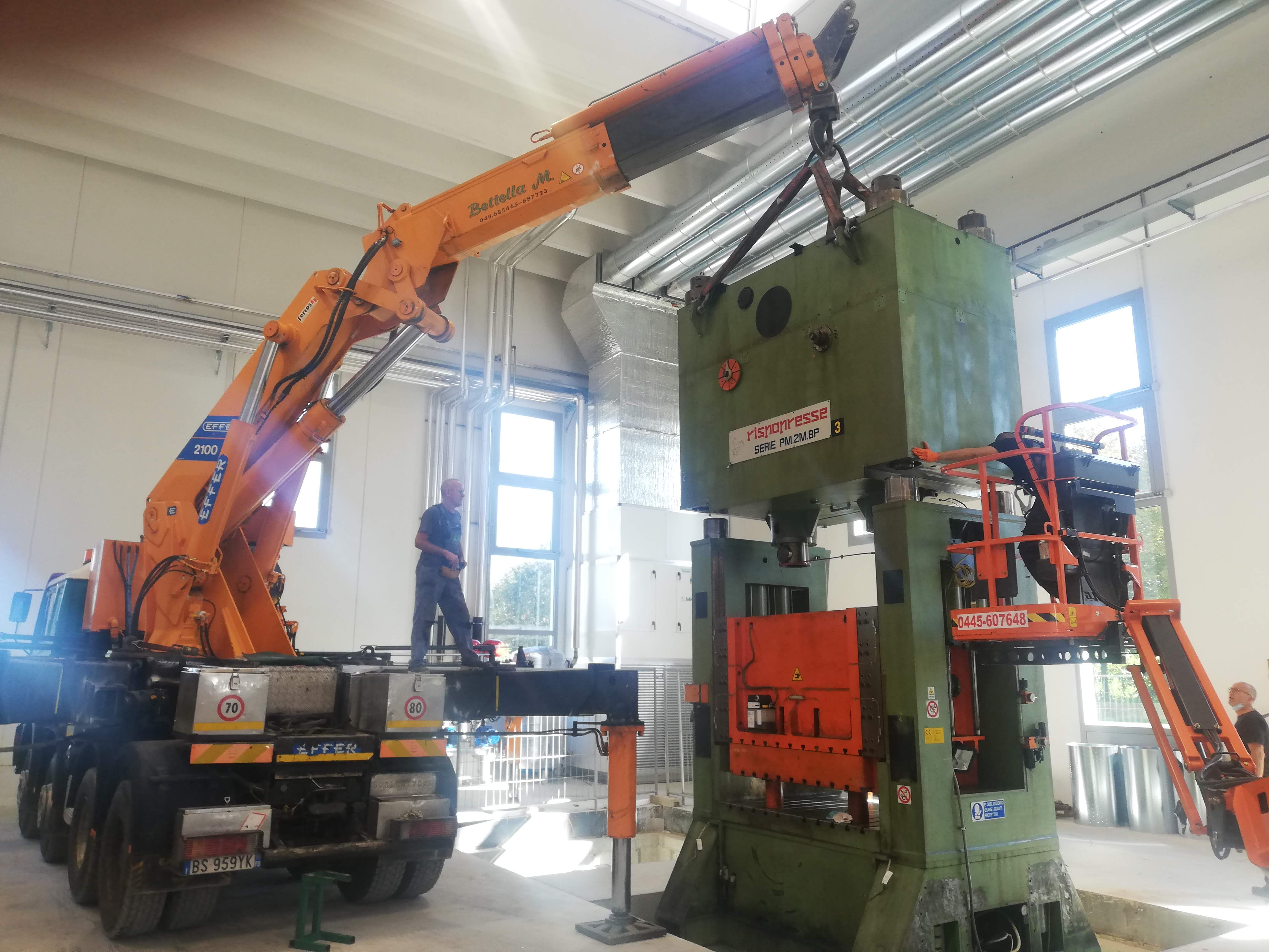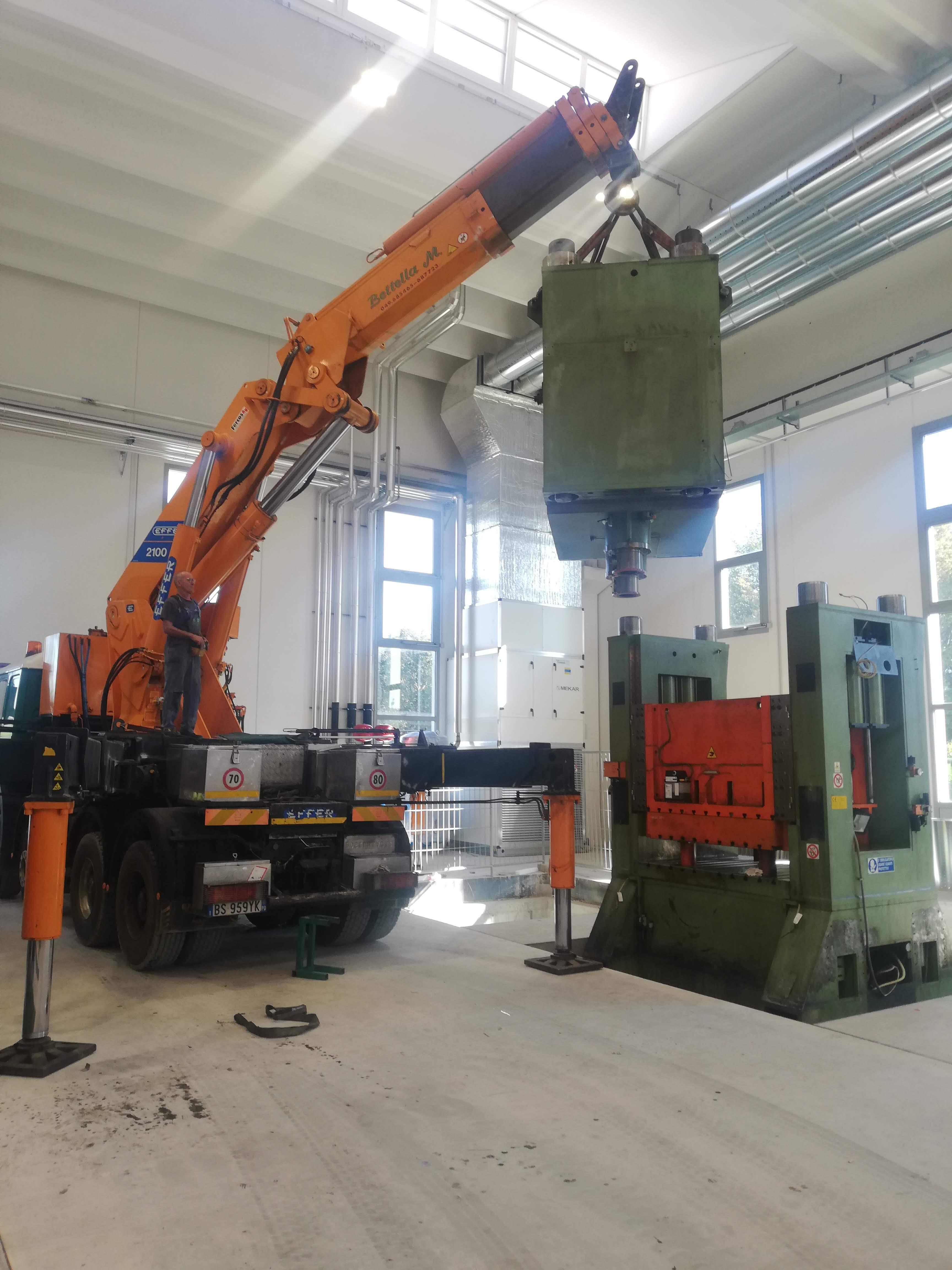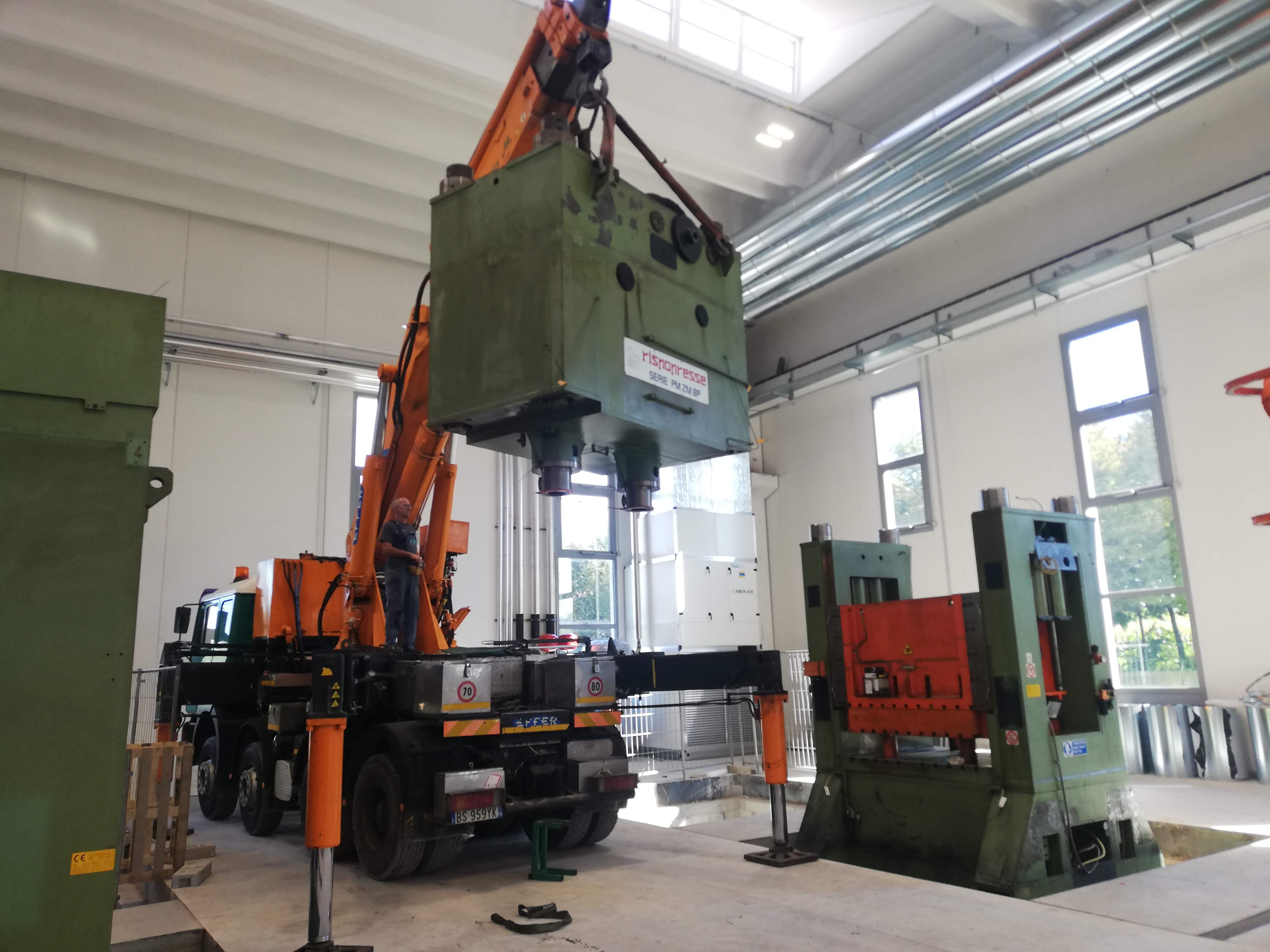 Le presse sono state sollevate con autogru, alcune sono state coricate in orizzontale per essere trasportate con mezzi per trasporti eccezionali a nuova sede, scaricate con autogru e riposizionate.