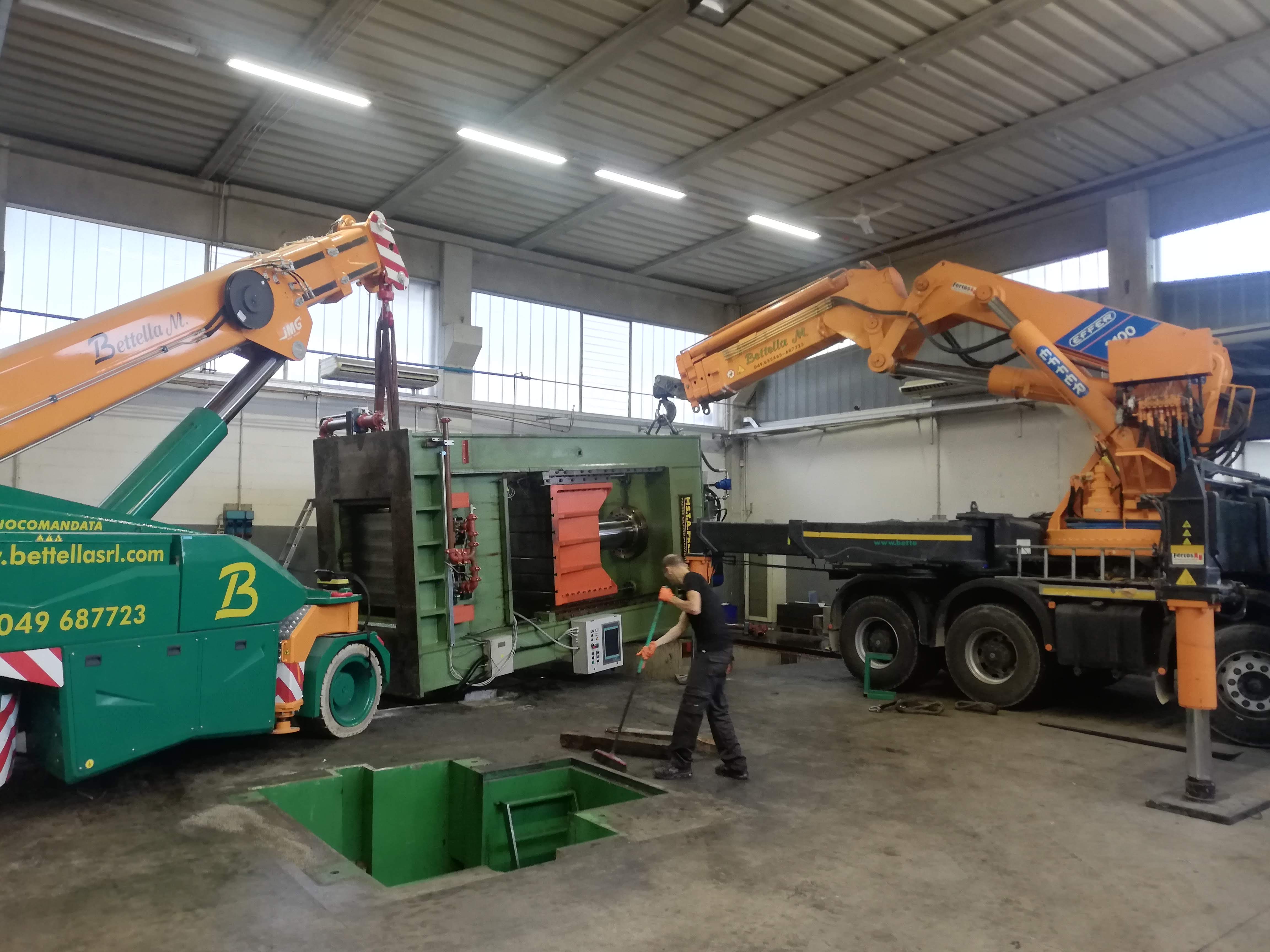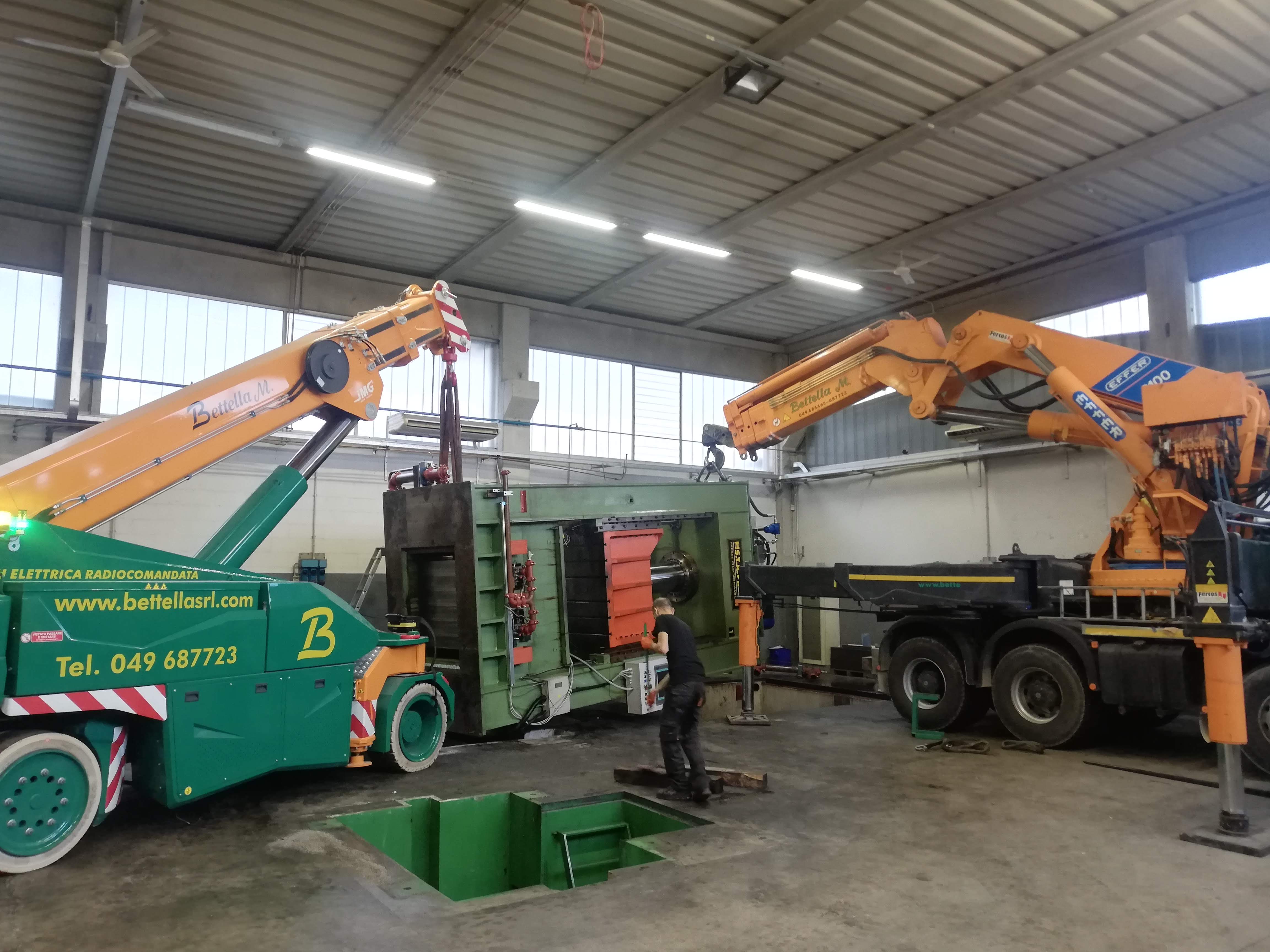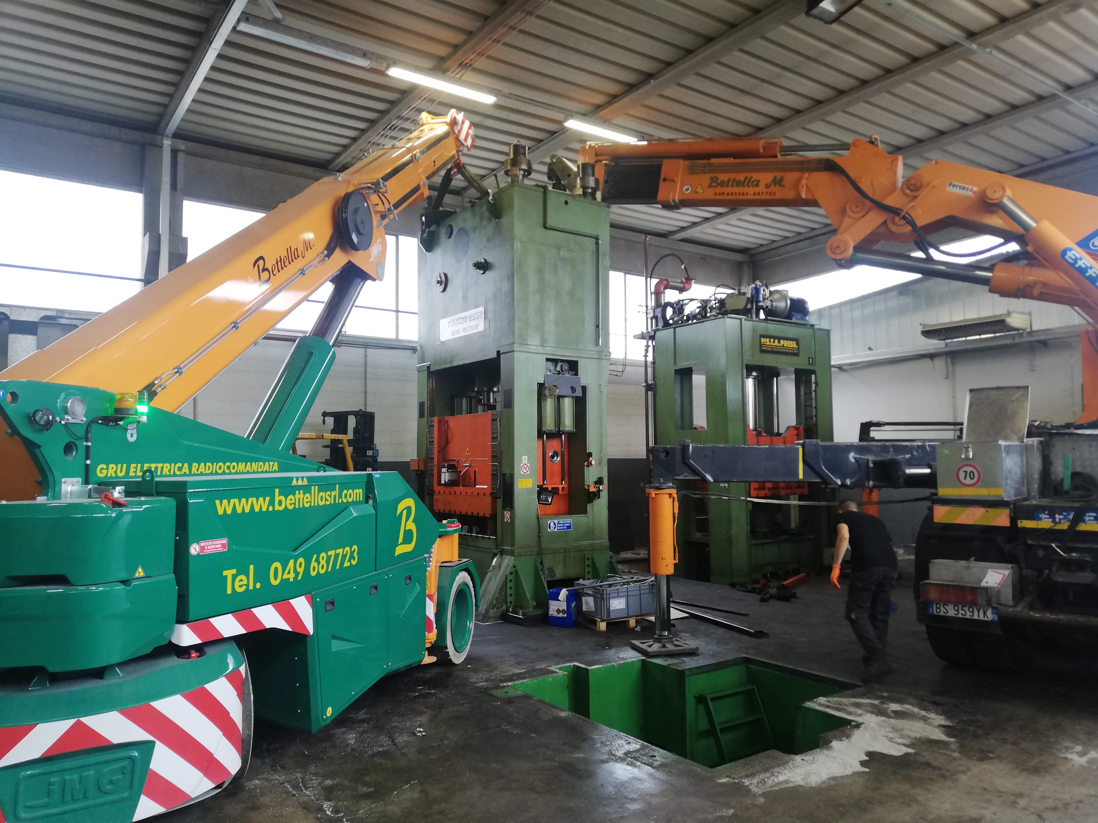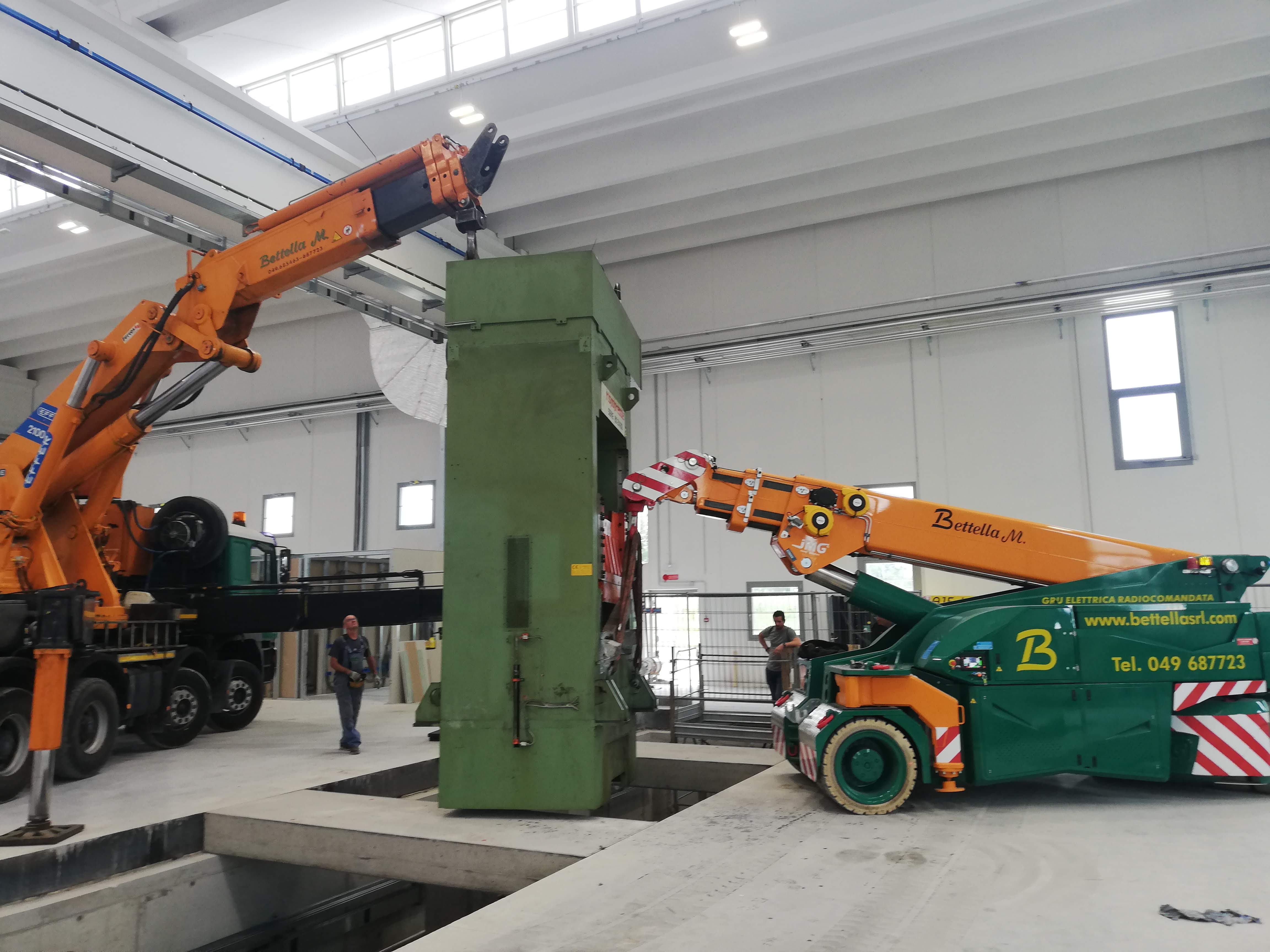 Le presse sono state sollevate con autogru, alcune sono state coricate in orizzontale per essere trasportate con mezzi per trasporti eccezionali a nuova sede, scaricate con autogru e riposizionate.