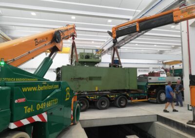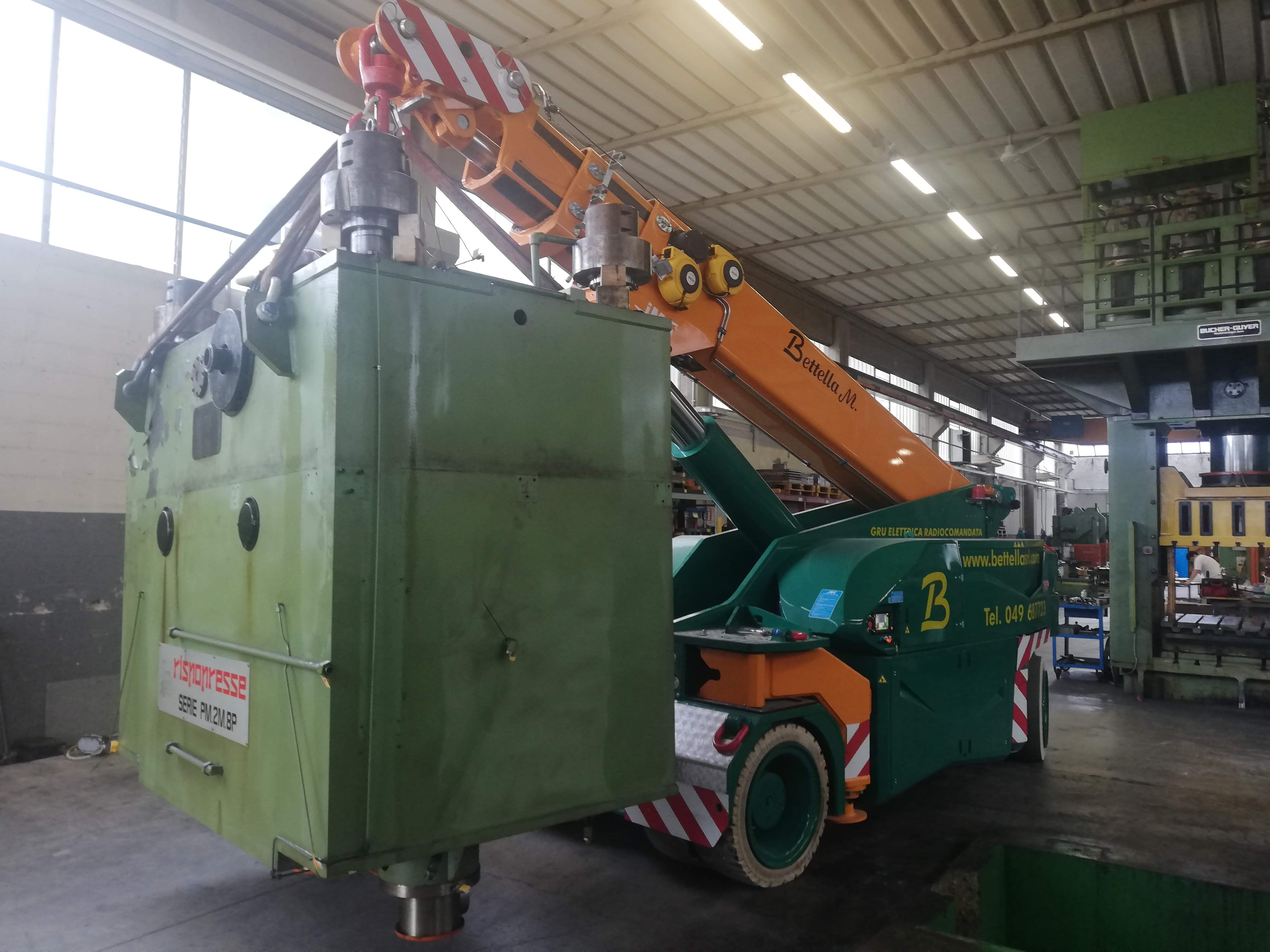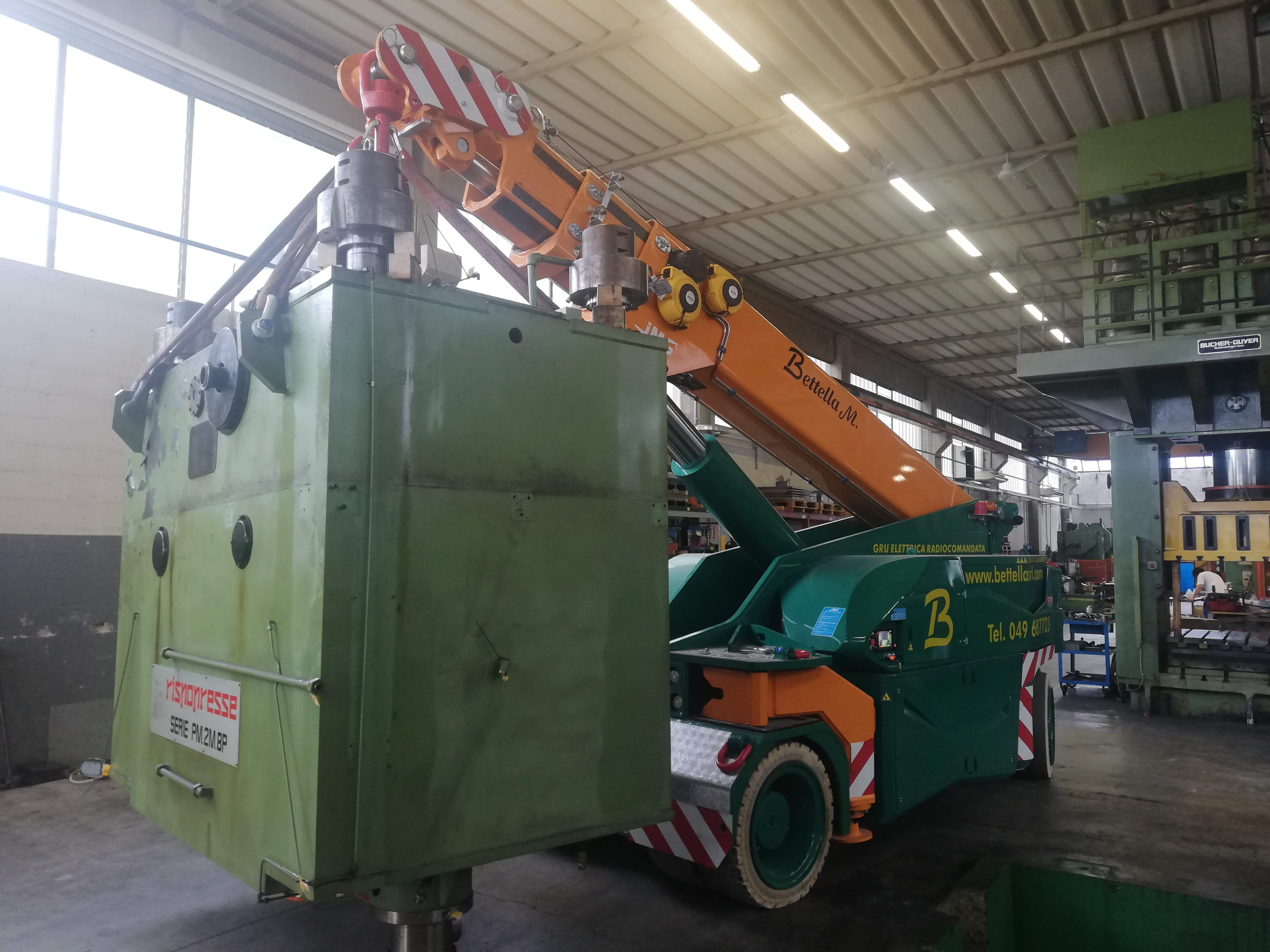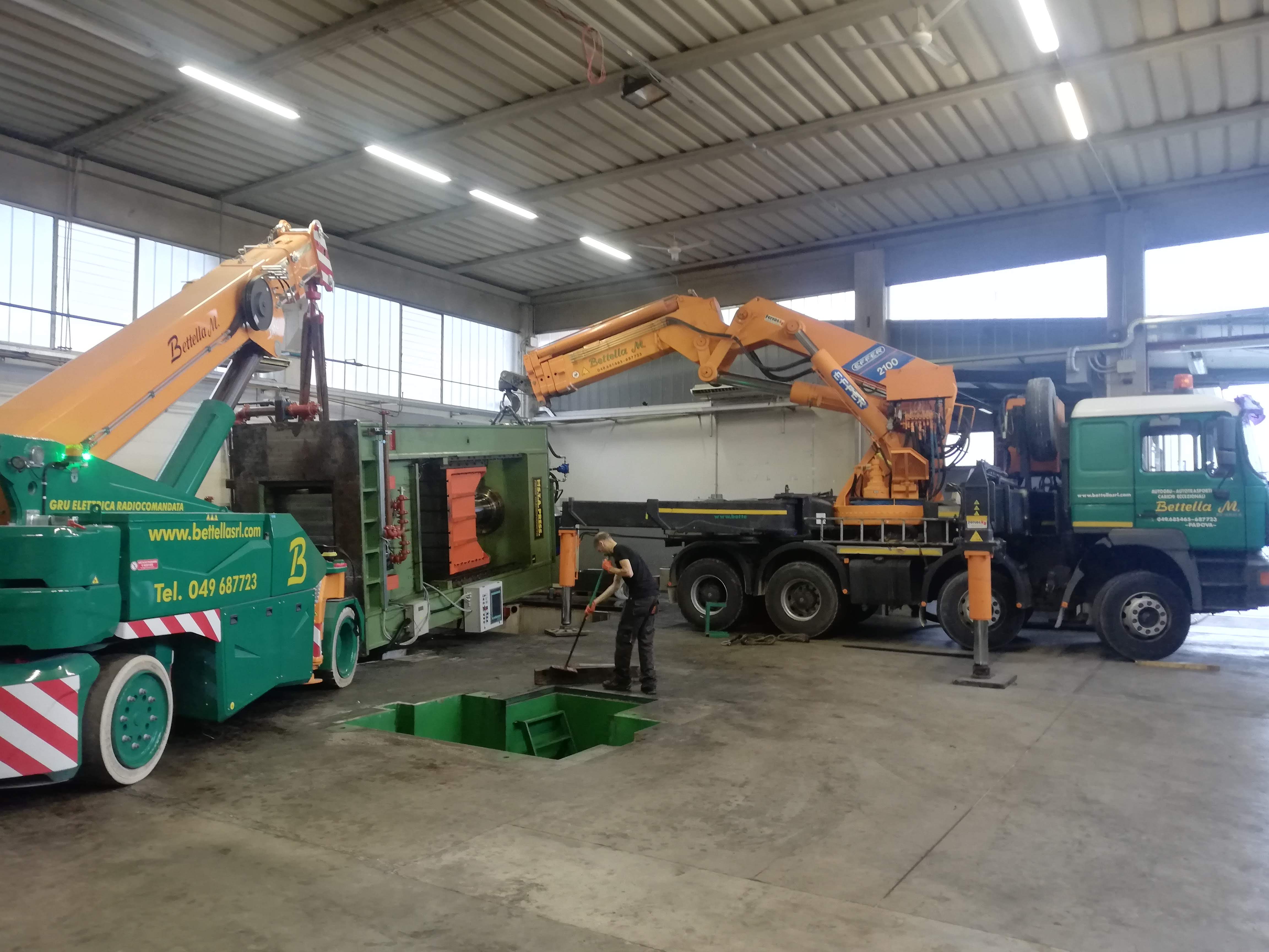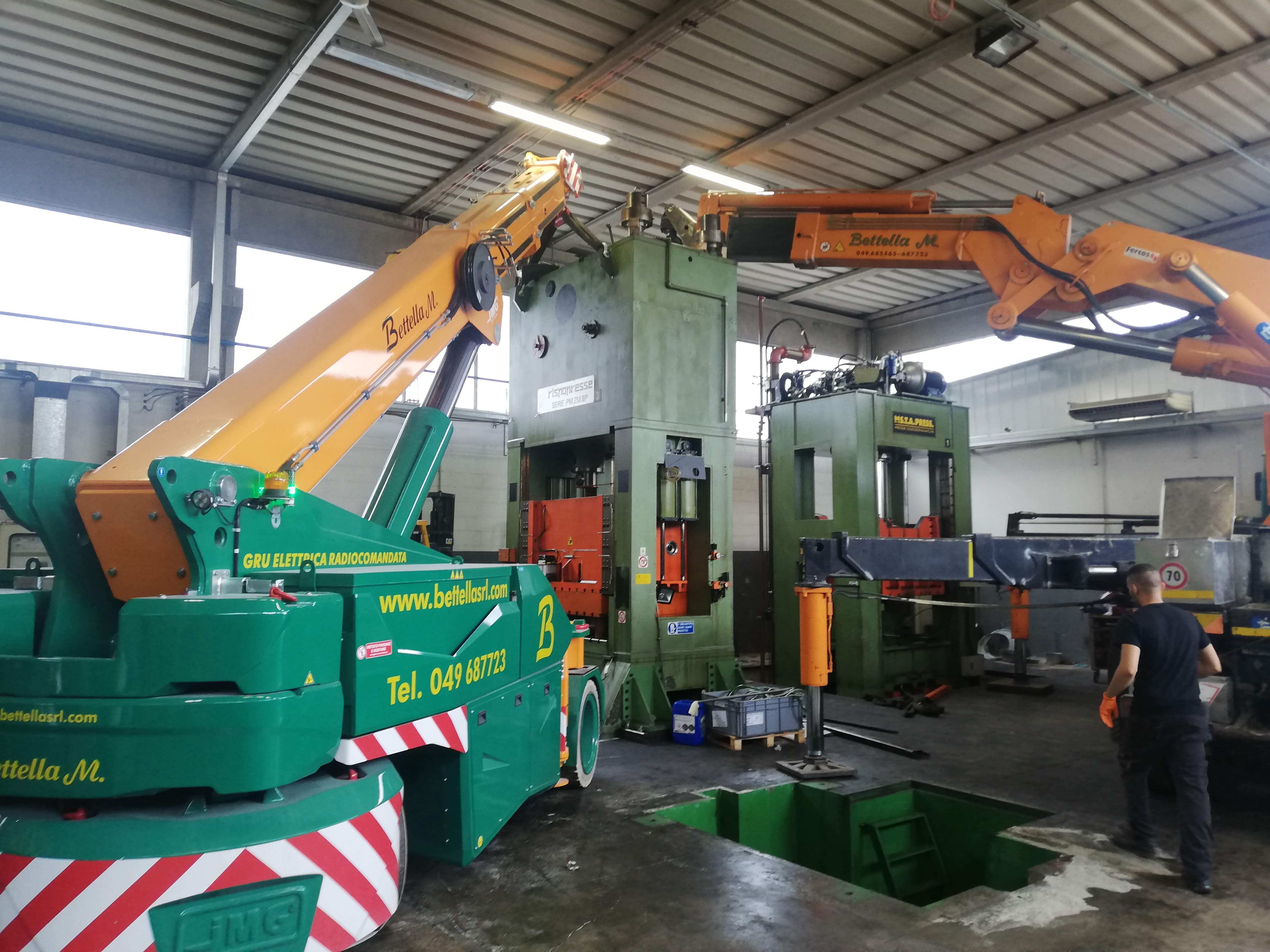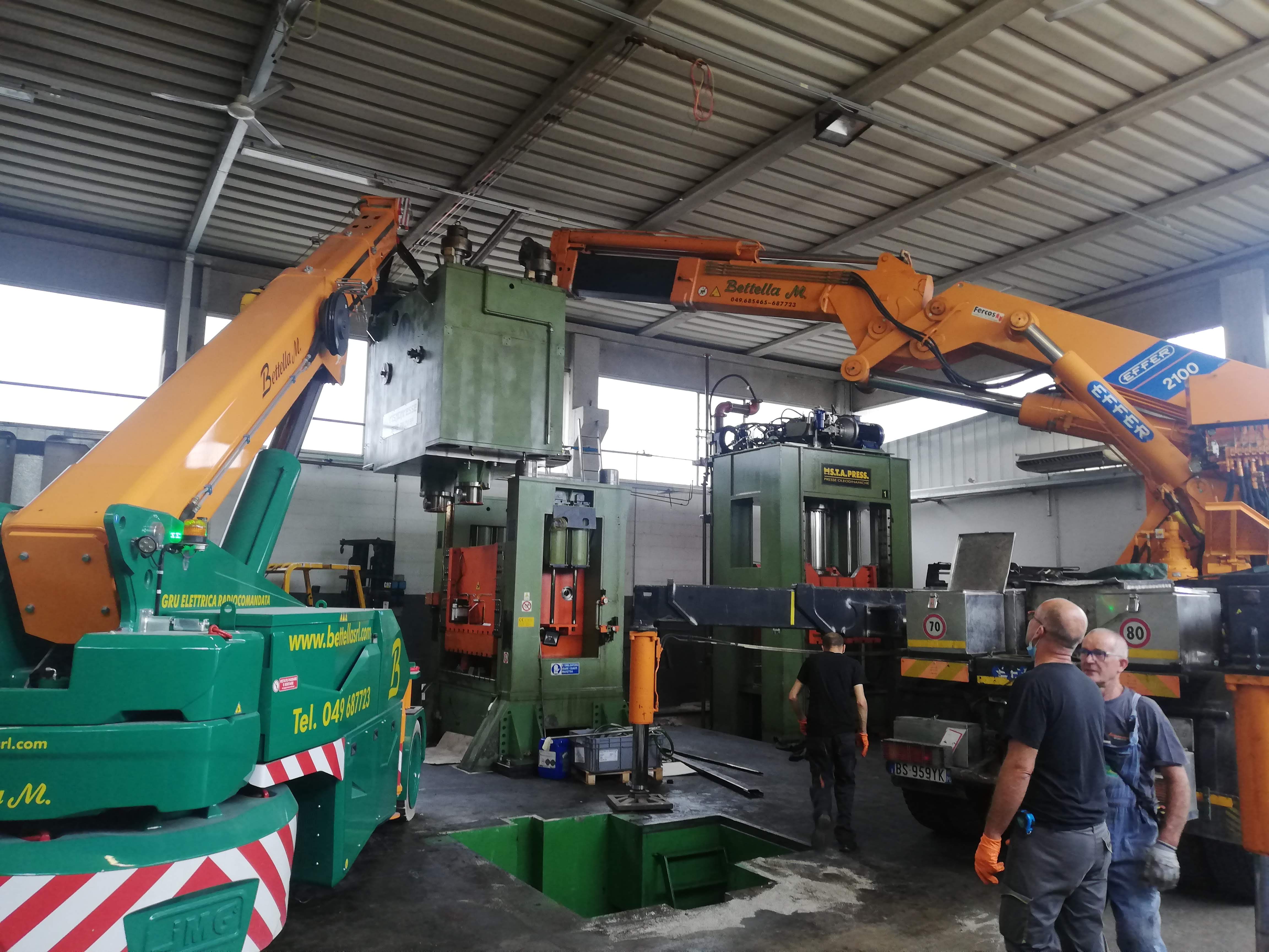 Le presse sono state sollevate con autogru, alcune sono state coricate in orizzontale per essere trasportate con mezzi per trasporti eccezionali a nuova sede, scaricate con autogru e riposizionate.
